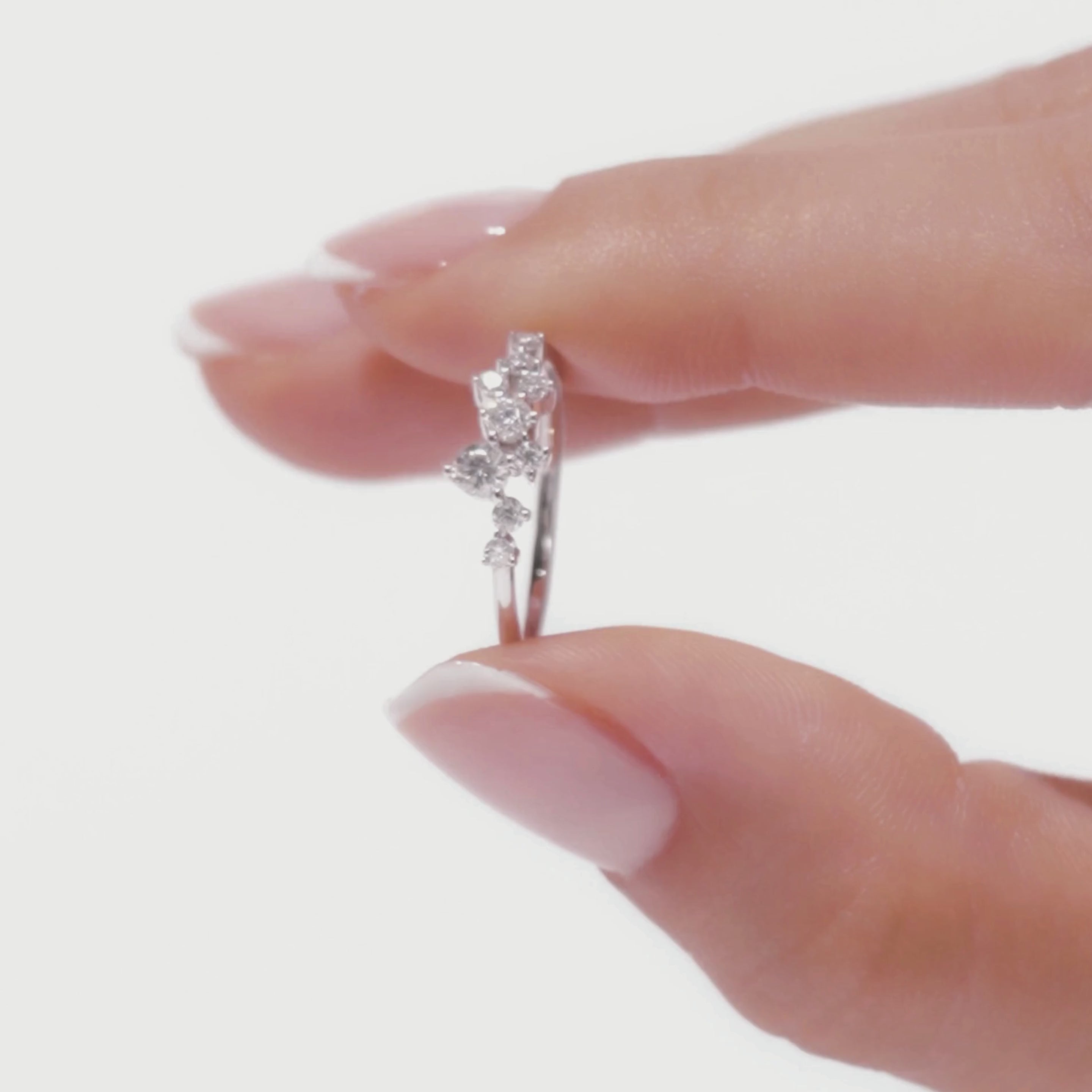 The Cascade is a blend of classic elegance with modern charm. Crafted from premium S925 sterling silver, this ring showcases round-cut moissanite stones in a scattered stone prong setting, creating a dazzling brilliance.