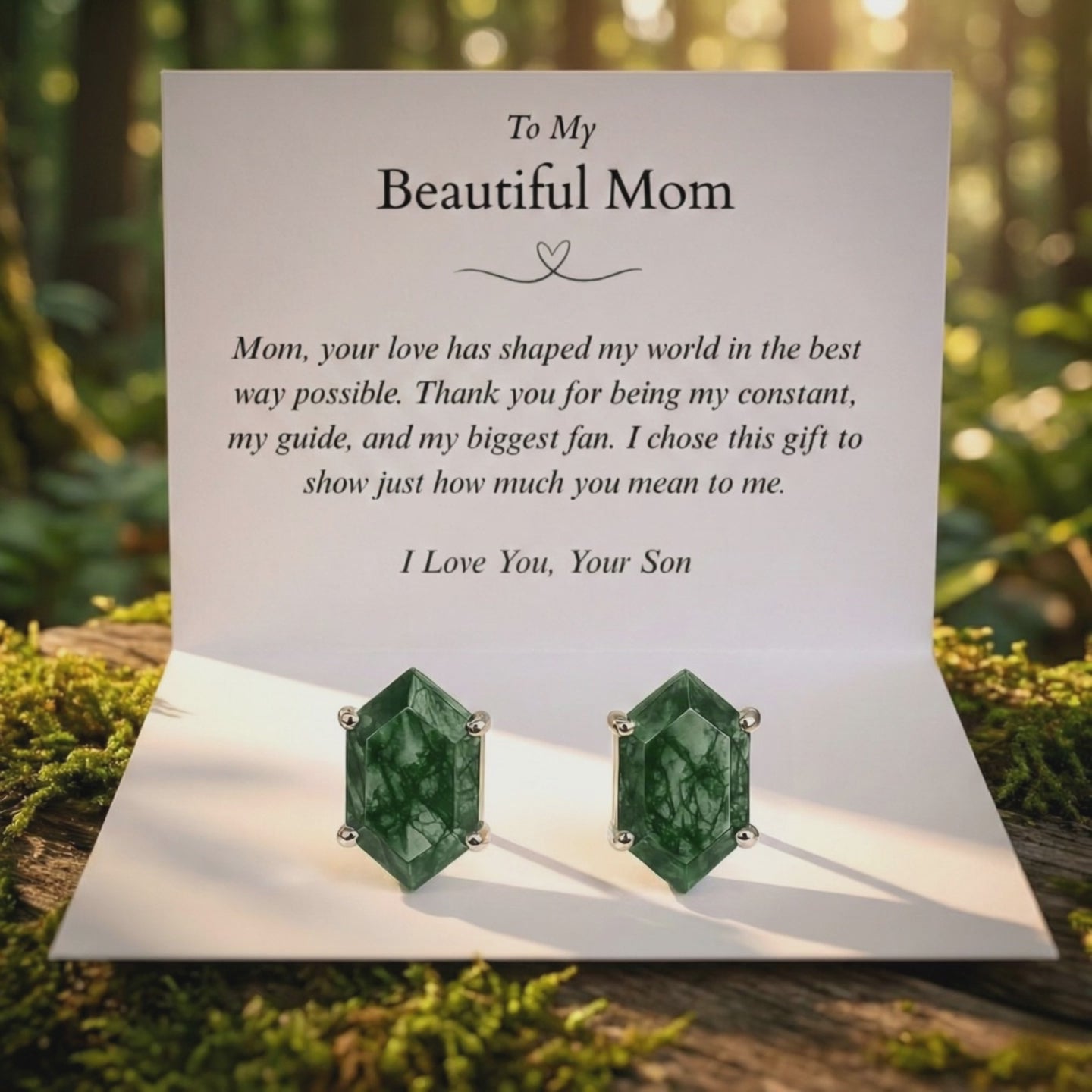 To My Beautiful Mom | Moss Agate Earrings | From Daughter