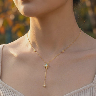 Watch the inner fire dance across your neckline. This natural opal oval drop necklace is expertly crafted in premium 18K gold vermeil over S925 sterling silver, featuring an elegant lariat-style pendant that catches the light with your every movement. Because every stone is earth-mined and formed over millions of years, the mesmerizing play-of-color you receive is a completely unique optical fingerprint. No one else in the world owns this exact stone.