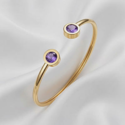 For the February born, we rejected the inconsistency of mined stones. We utilized A5 Grade material to eliminate the zoning often found in mined quartz with perfect Royal Purple saturation.