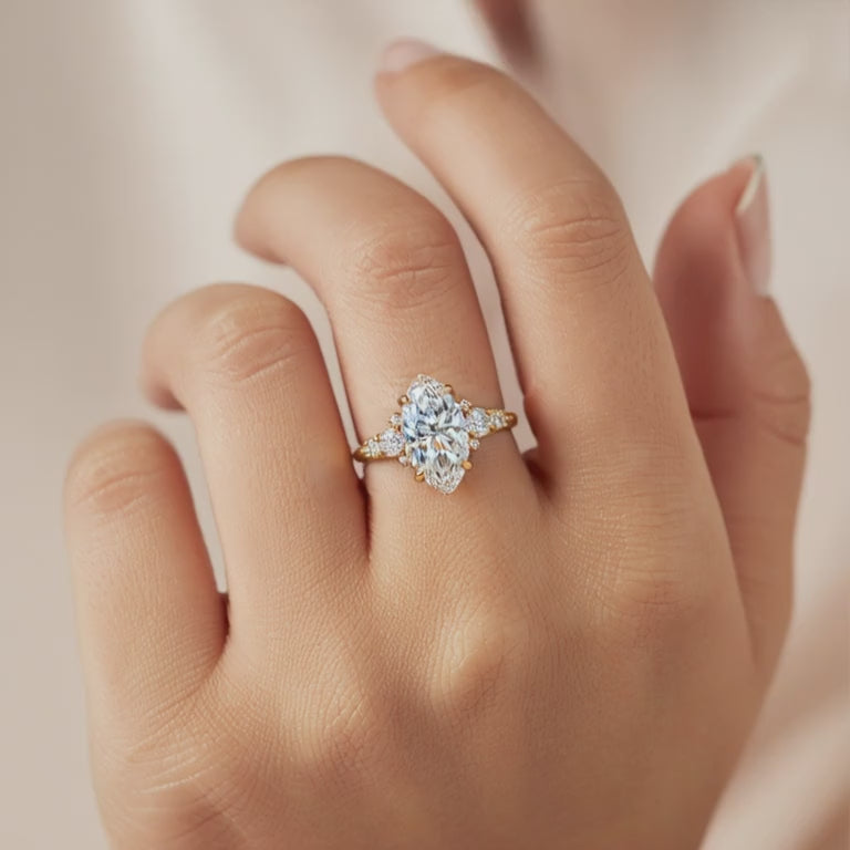 Beim Bella Jewel geht es nicht nur um den Mittelstein. Es besteht aus einer ganzen Reihe kleinerer Moissanite, die das Band säumen und das Licht aus jedem Winkel wunderschön einfangen.