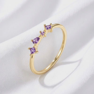 Mined amethyst often varies in depth and saturation, leaving many stones looking pale or uneven. The Elisia ring is engineered with high-performance Simulated Amethyst, color-calibrated to the ideal deep violet benchmark of museum-grade gemstones. Each stone is precision-cut from A5 Grade material, ensuring consistent light return and optical perfection that nature rarely produces.