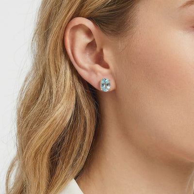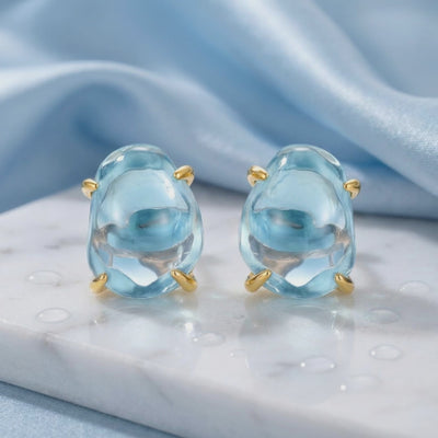 Nature rarely delivers consistent saturation. We engineered it. These stud earrings feature a Simulated Aquamarine color-calibrated to the ideal March birthstone profile—a crisp, light blue with VVS-grade clarity.