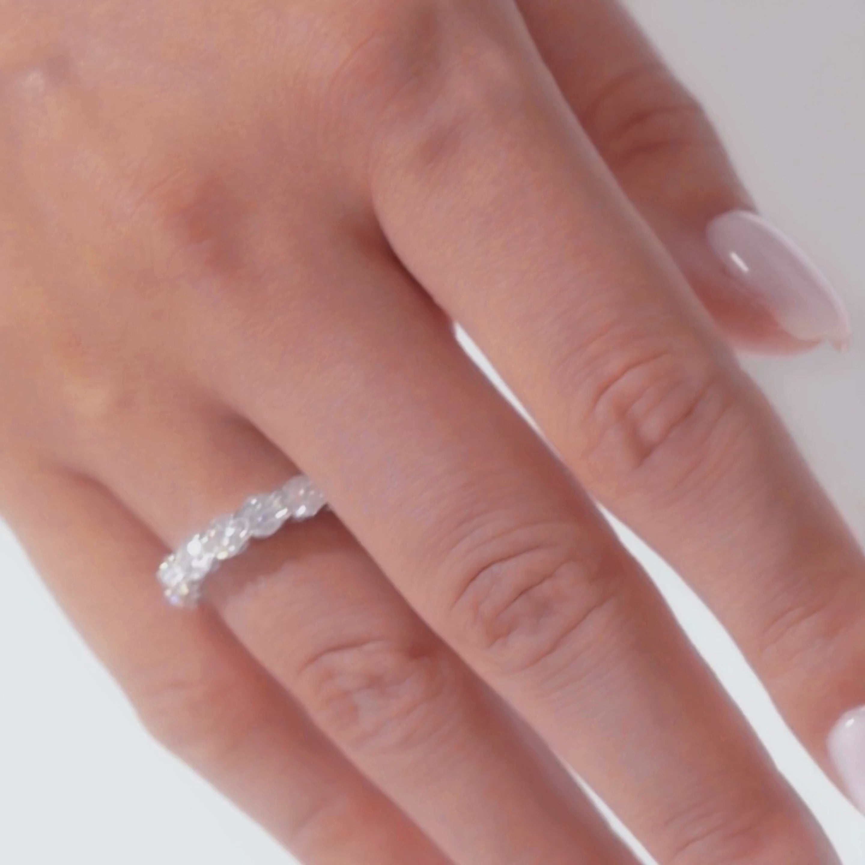 „The Opulence“ ist in den Größen 5 bis 9 erhältlich und besticht durch seine schimmernde Ansammlung von Moissanit-Edelsteinen, die jeweils durch eine sichere Krappenfassung an ihrem Platz gehalten werden.