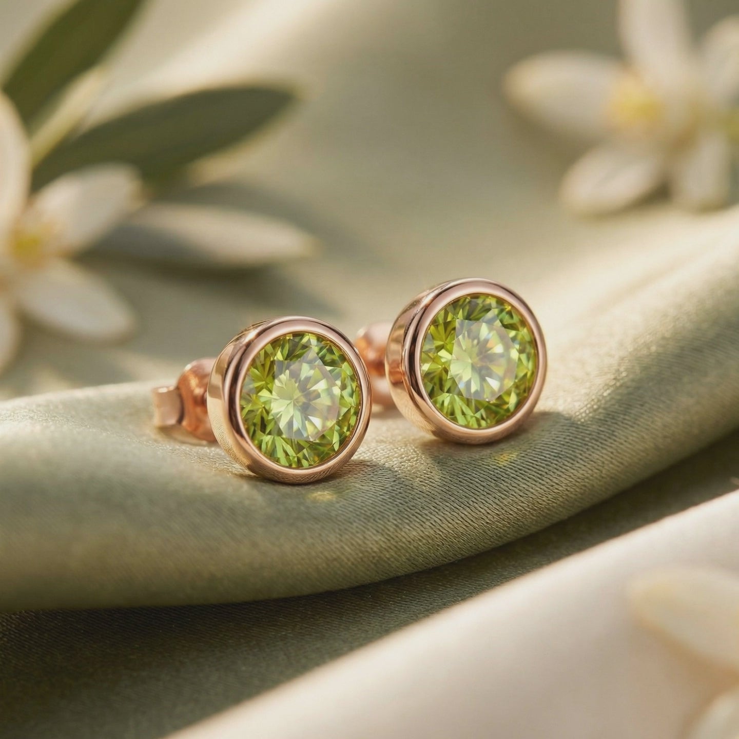 We hand-select every gemstone for deep, saturated olive-green hues with the electric lime glow the ancients called the "Evening Emerald," then precision-facet each stone to maximize light return and eliminate windowing. You see the difference the moment it catches light — day or night.