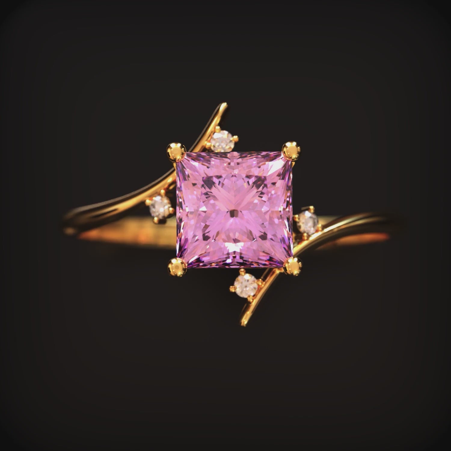 - Stone: Flawless ideal Princess cut moissanite gemstone