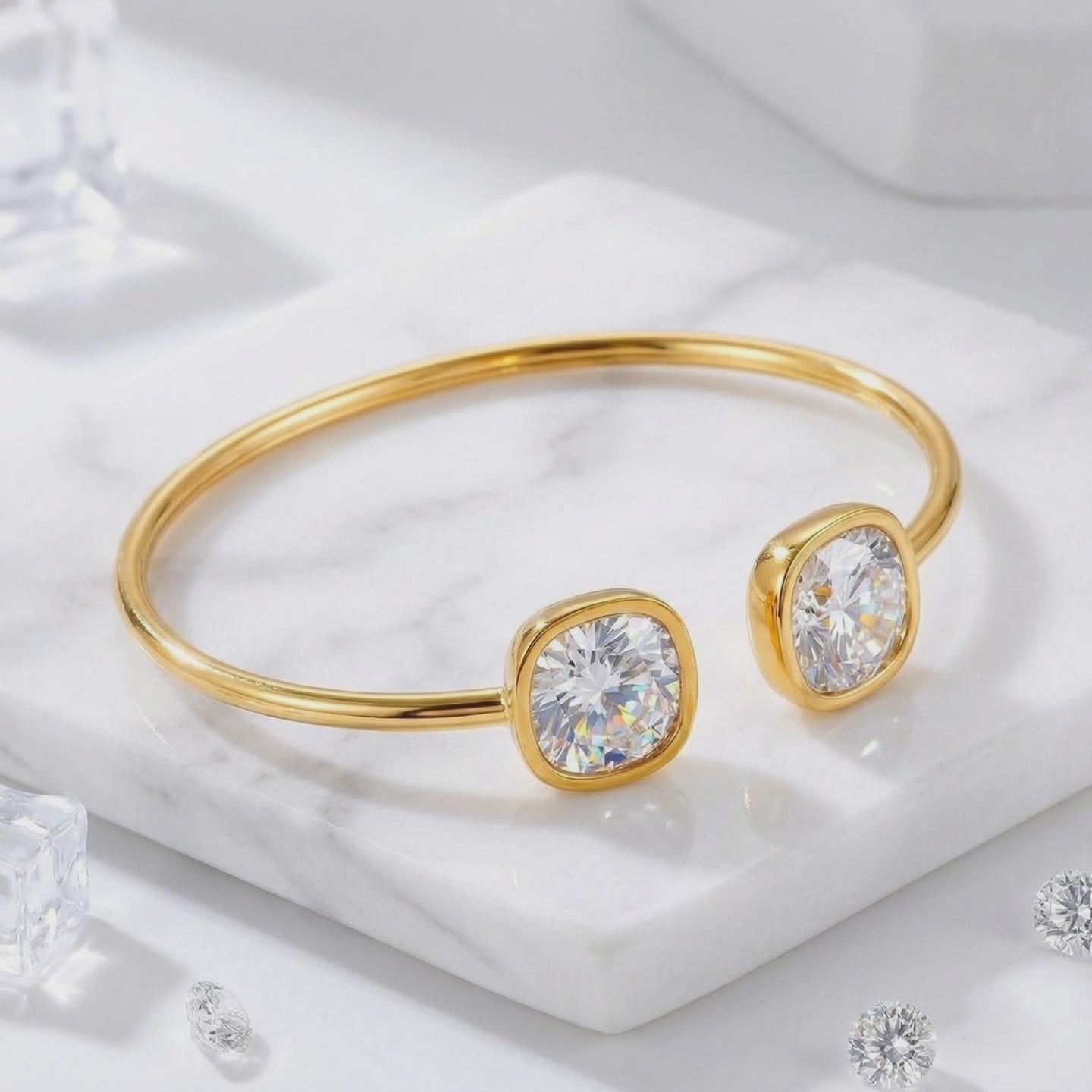 We engineered the mounting for daily durability. Crafted from high-grade Stainless Steel with a gold-tone finish, this cuff is designed to resist tarnish and impact. It is jewelry built for the real world—low-profile, snag-resistant, and ready for 24/7 wear.
