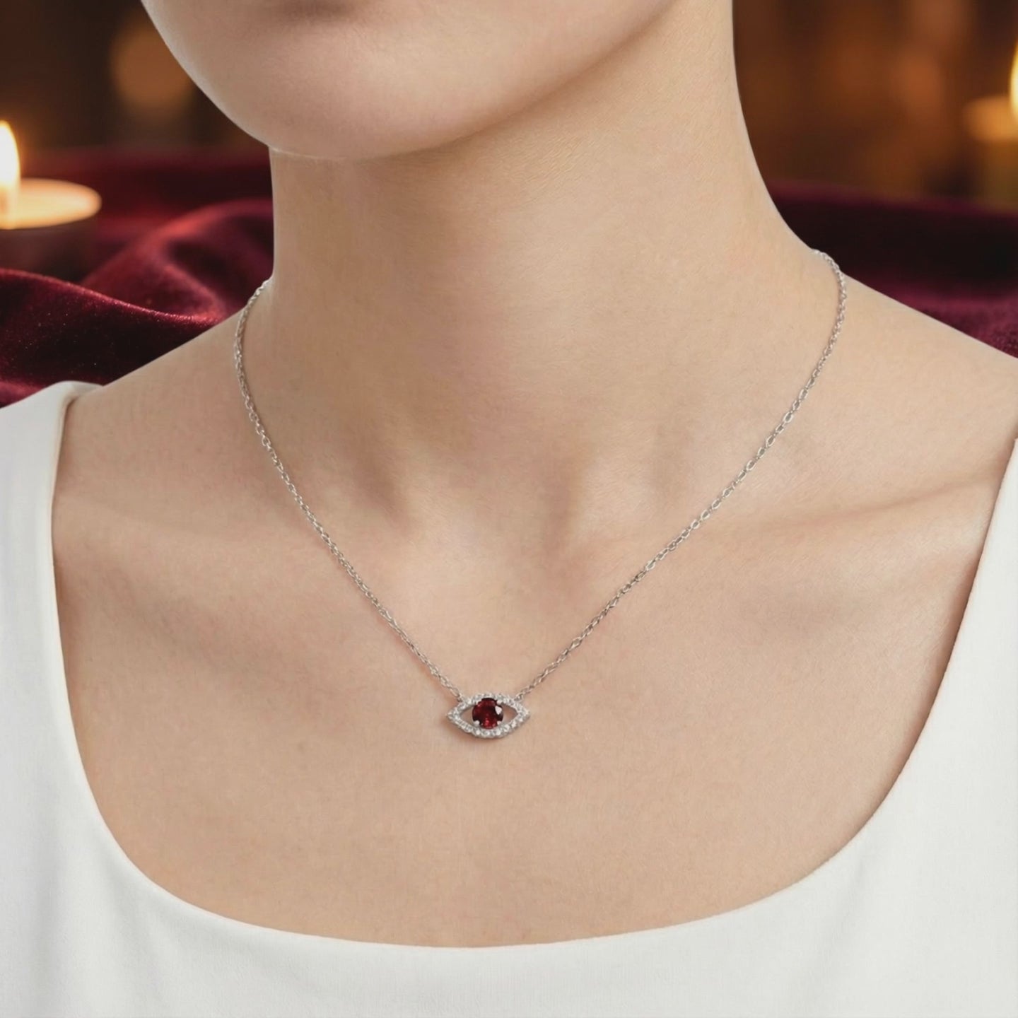 Nature rarely delivers the perfect deep red saturation found in museum-grade Garnet. We engineered it. This January birthstone necklace features a center-cut Simulated Garnet, color-calibrated to match the ideal profile without the natural inclusions or the 1000% mining markup.