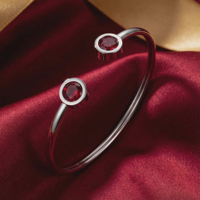 - Stone: Round-Cut Simulated Ruby (A5 Cubic Zirconia)
