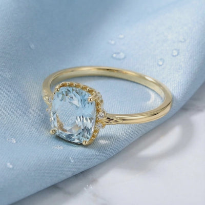 Nature rarely delivers the perfect shade of light blue, but engineering does. This cushion-cut ring features Simulated Aquamarine, color-calibrated to match the ideal, deep saturation of a museum-grade heirloom. Precision-faceted for maximum light return, it offers more visual impact than mined stones at a fraction of the cost.