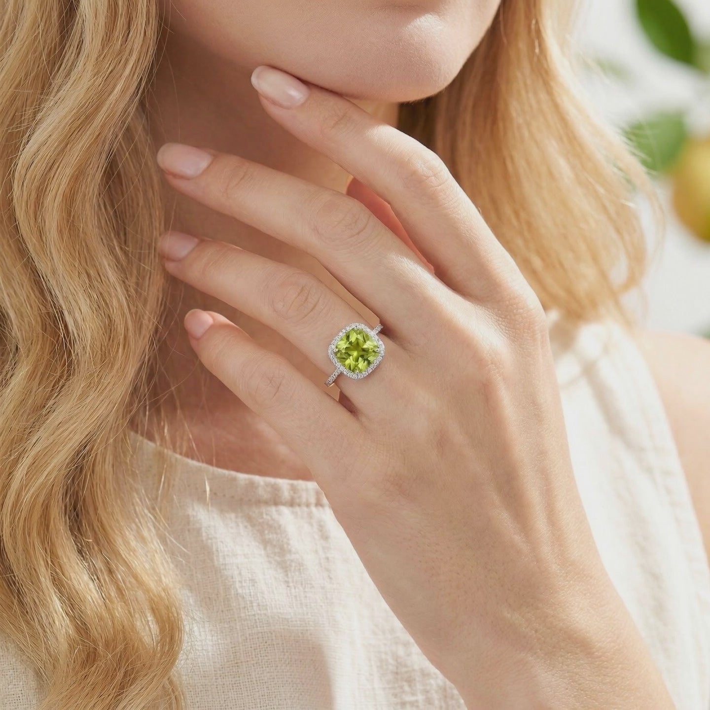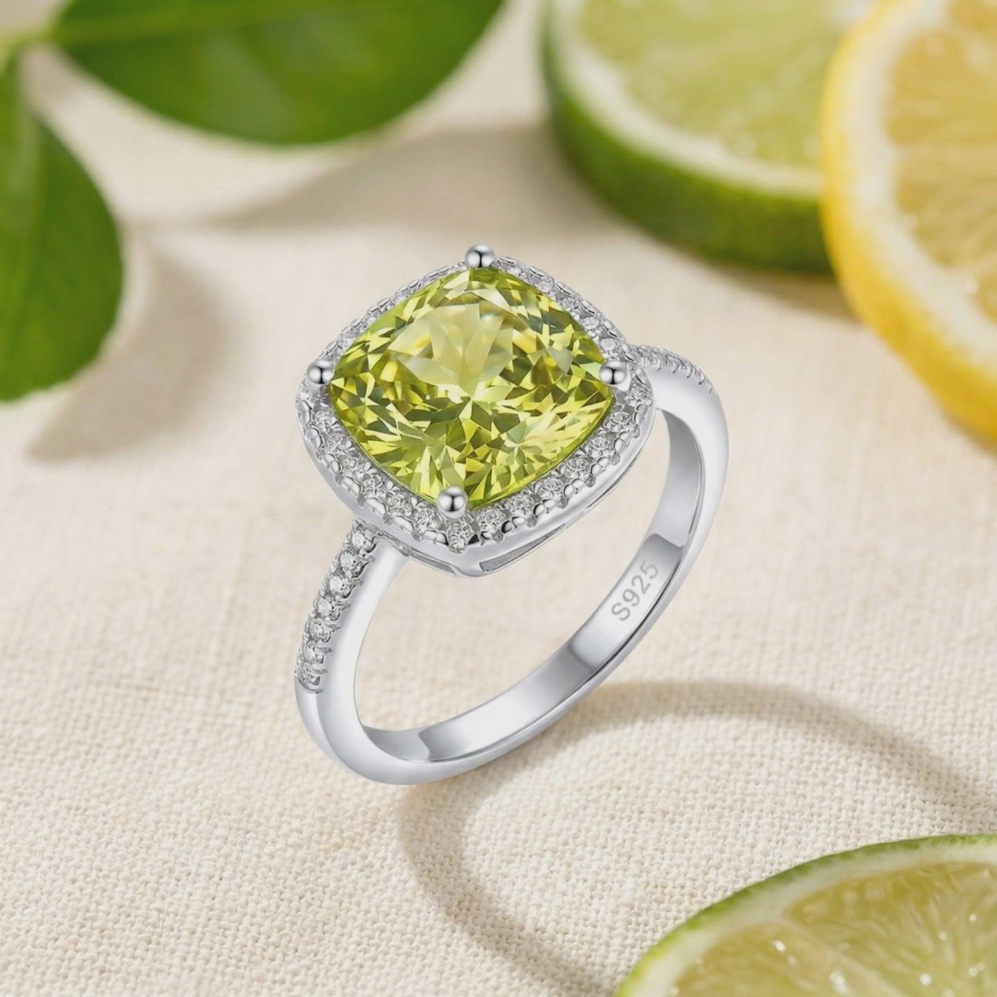 - Stone: A5 Grade Simulated Peridot (Cubic Zirconia)