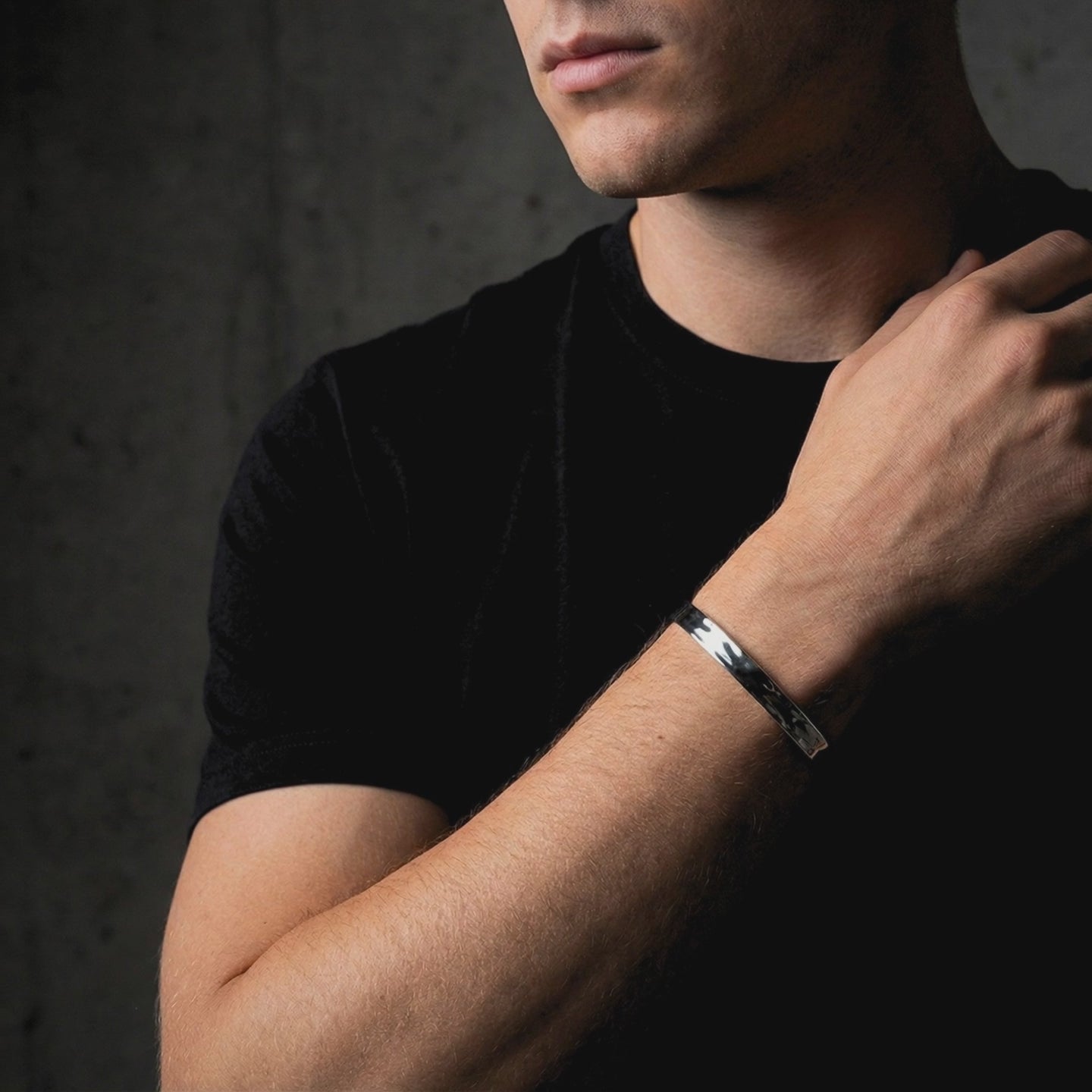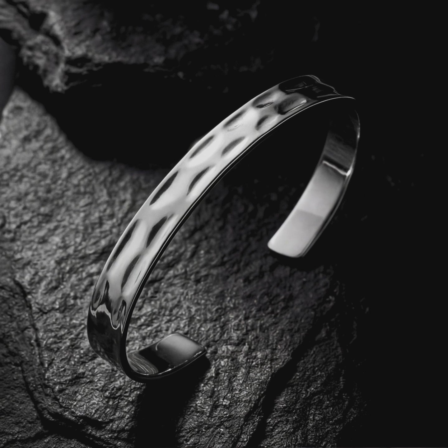 The Hammered Edge Bangle brings a touch of rugged refinement to your wrist. Crafted from high-grade stainless steel and finished in polished silver, it's designed to withstand daily wear without losing its luster. Whether you're dressing up or keeping it casual, this bangle adds a subtle statement of enduring quality.