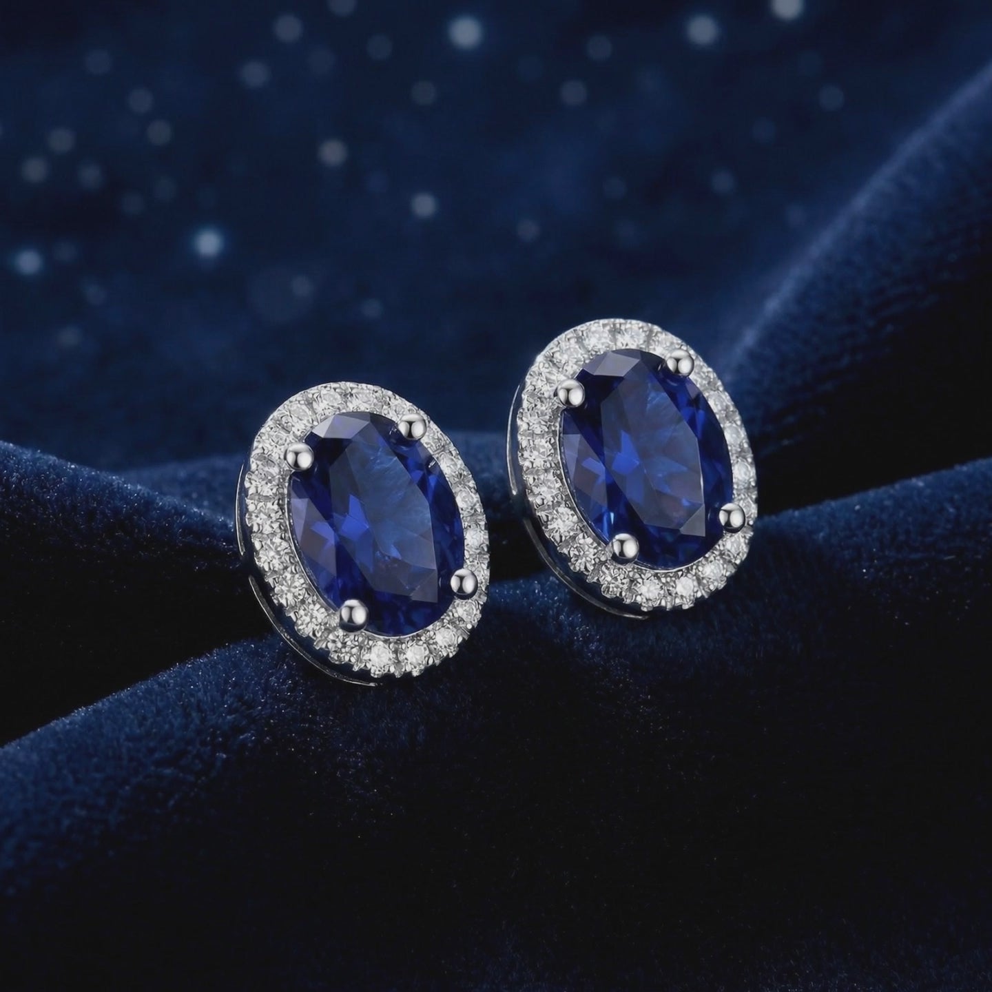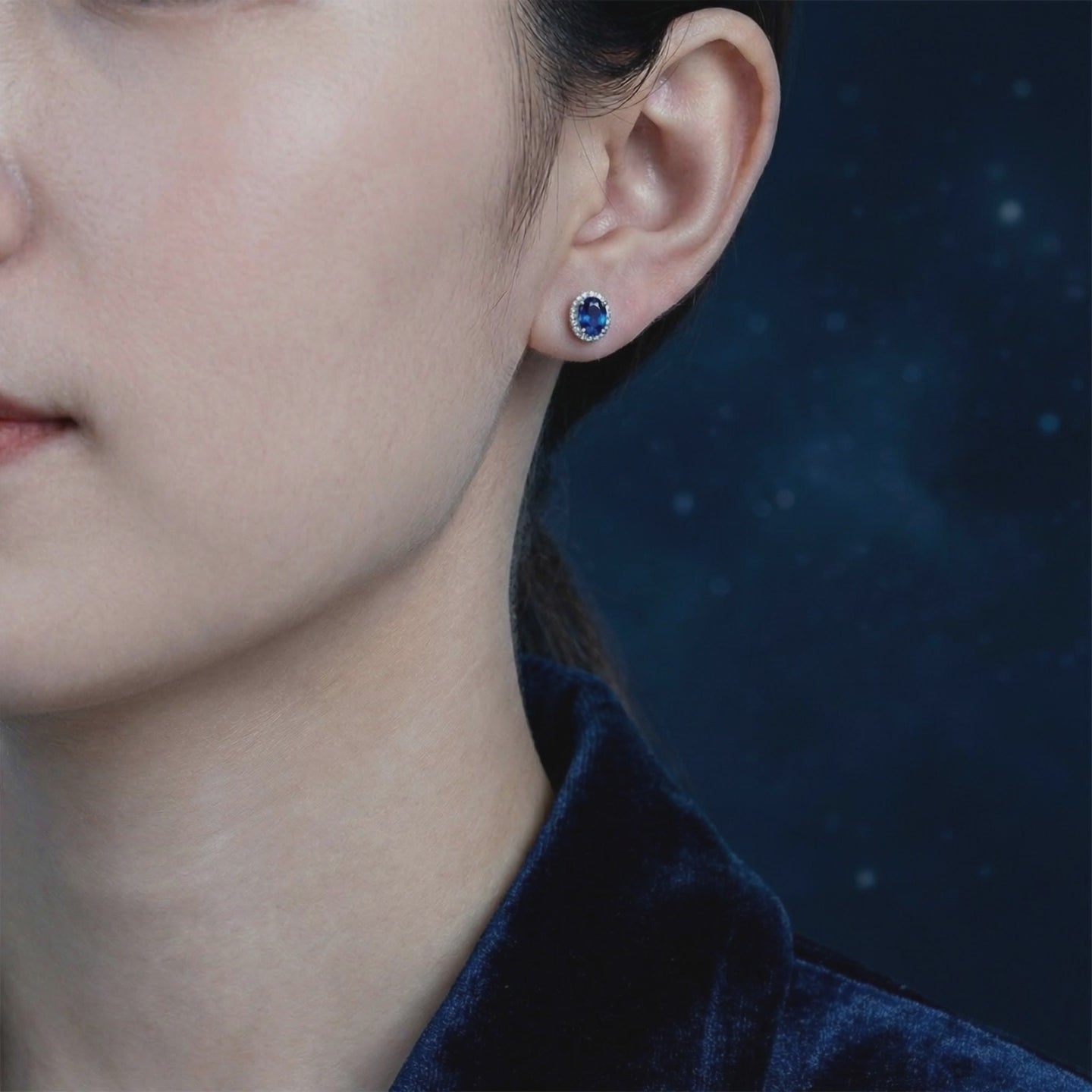 Mined sapphires often vary wildly in color and clarity. These earrings feature Simulated Sapphire, engineered to match the museum-grade benchmark of deep royal blue with velvety saturation. Each stone is precision-cut from A5 Grade material for maximum light return and edge-to-edge brilliance.