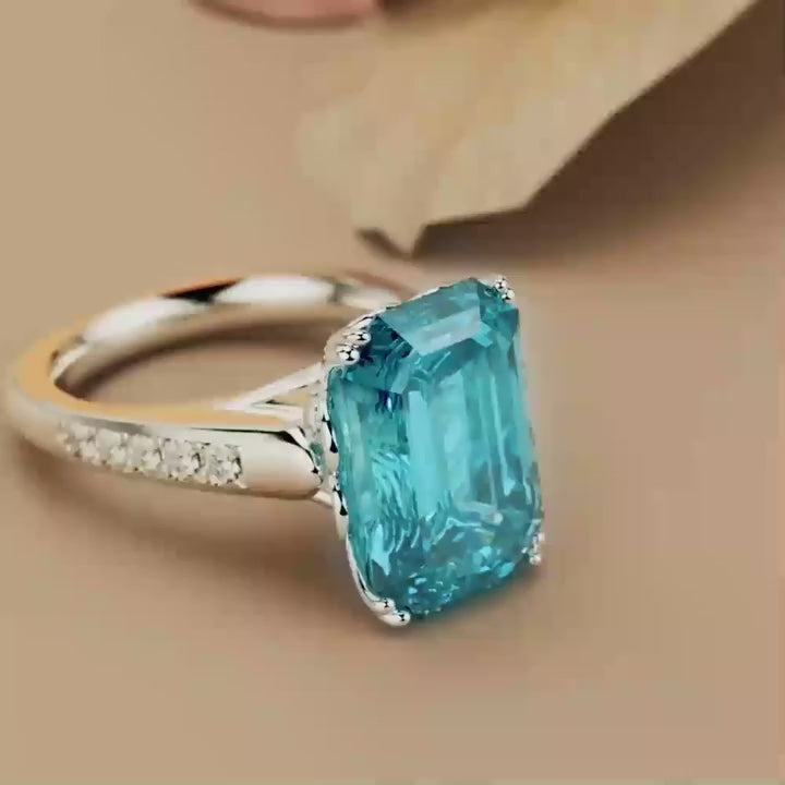 Aqua Dream: Emerald-Cut Aquamarine Ring - S925 Sterling Silver