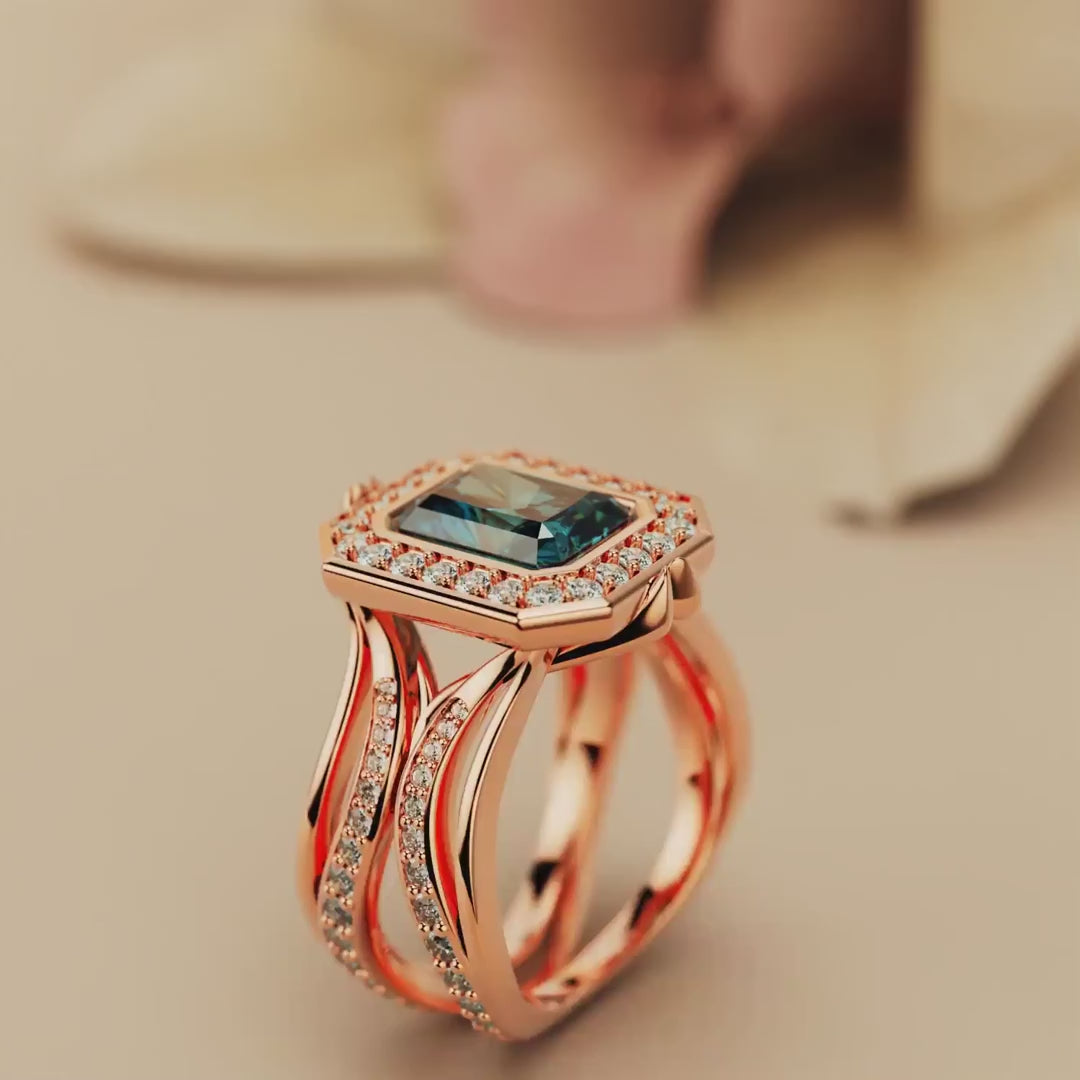 Elysian Glow: Emerald-Shaped Diamond Rose Ring