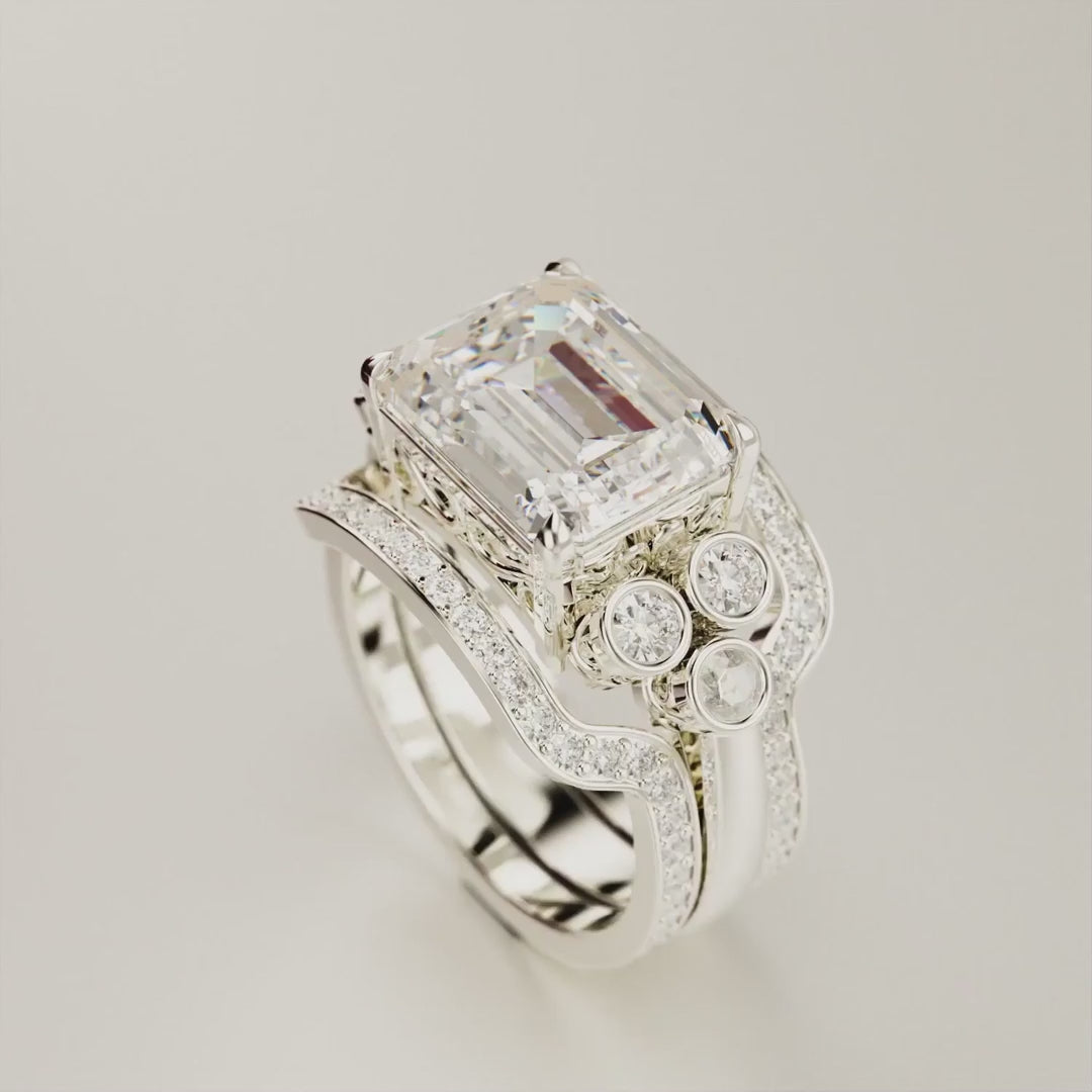 Eternal Love: Emerald-Cut Diamond Ring Set - S925 Sterling Silver