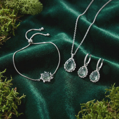 Gaze into the depths of this Natural Moss Agate Jewelry Set and you’ll see more than just a gemstone—you’ll see a miniature landscape of ancient earth. Swirls of deep forest green dendritic inclusions float within the translucent chalcedony quartz, creating a mesmerizing, one-of-a-kind pattern that is yours and yours alone.