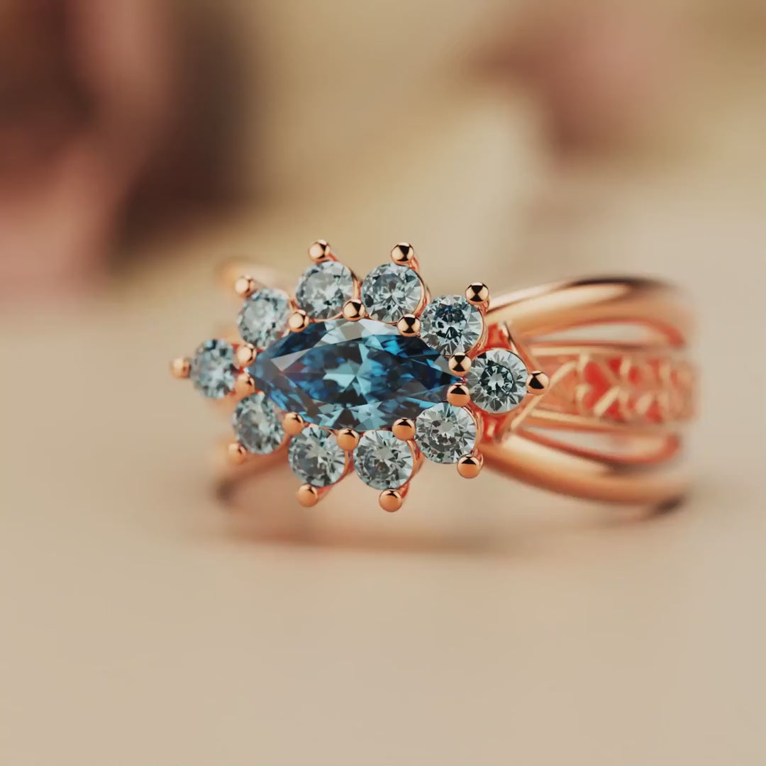 Step into elegance with a purpose with the Marquise Brilliance: Rose Gold Gem Cluster Elegance Ring. A signature design by Awareness Avenue. This ring from our original design collections is a testament to beauty and luxury. Each purchase is a stand against the blood diamond crisis by directly supporting Diamonds For Peace.