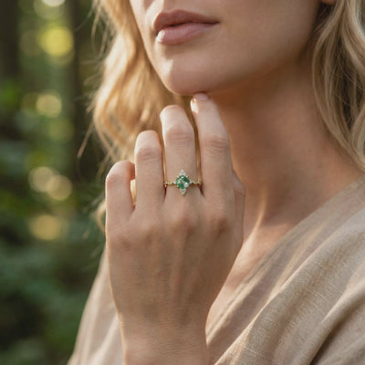 Moss Agate ranks 6.5–7 on the Mohs hardness scale — durable enough for daily wear with mindful handling. We engineer every setting with secure prongs or bezels specifically to protect the stone's edges.