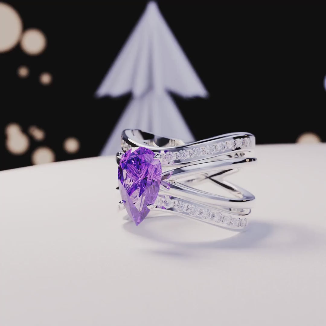 This classical band is perfect for any occassion. As a gift for her, an engagement ring or a gift for yourself - because you deserve it - it is guaranteed to impress. A bright and shiny pear-cut simulated Amethyst makes this ring stand out and is sure to bring lots of compliments. Each band is classical but when put together makes a more bold piece. They can be worn together or individually. High quality silver with 4 layers of platinum ensures a lifetime shine and durability.
