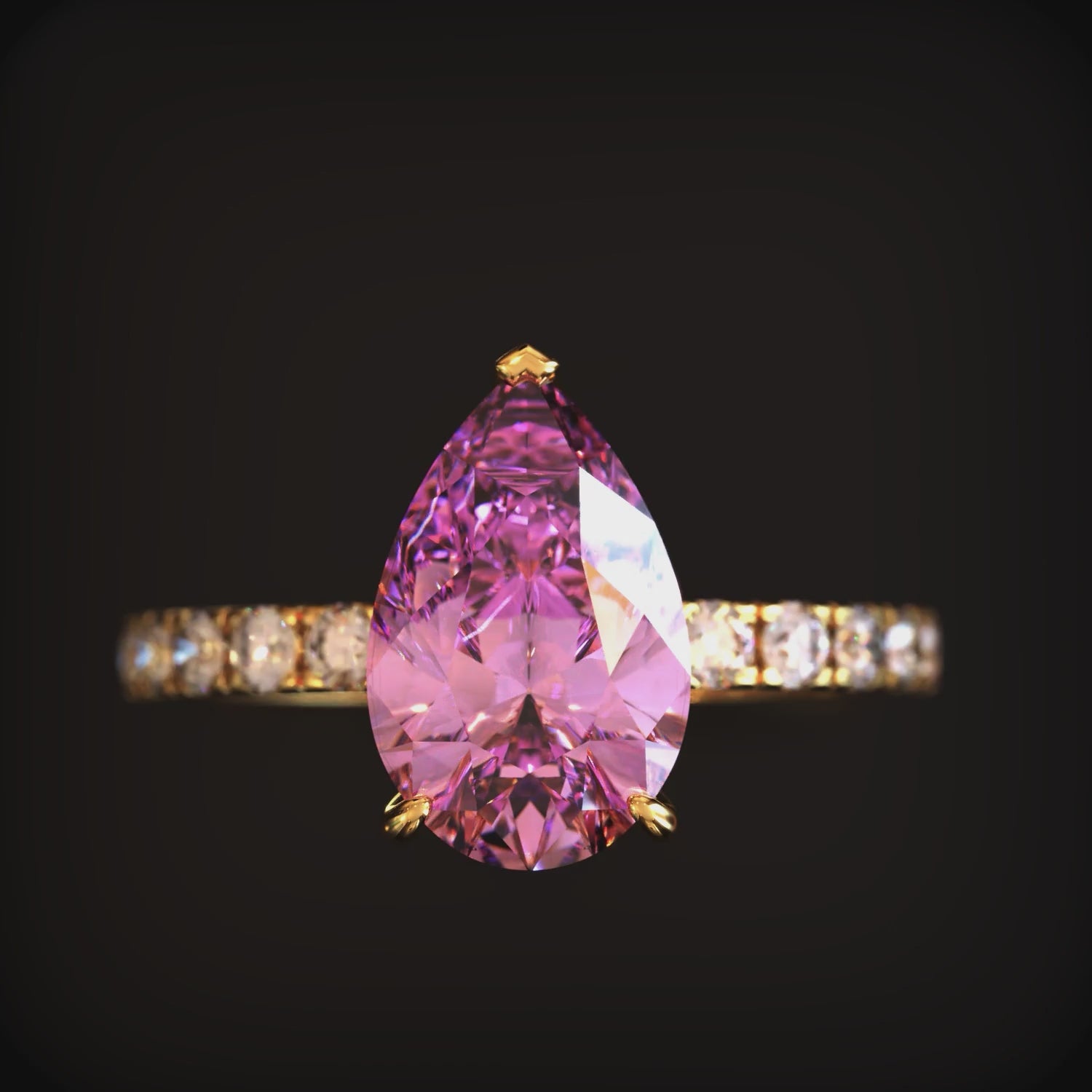 The Celina 3CT Pear Cut Pink Moissanite Ring