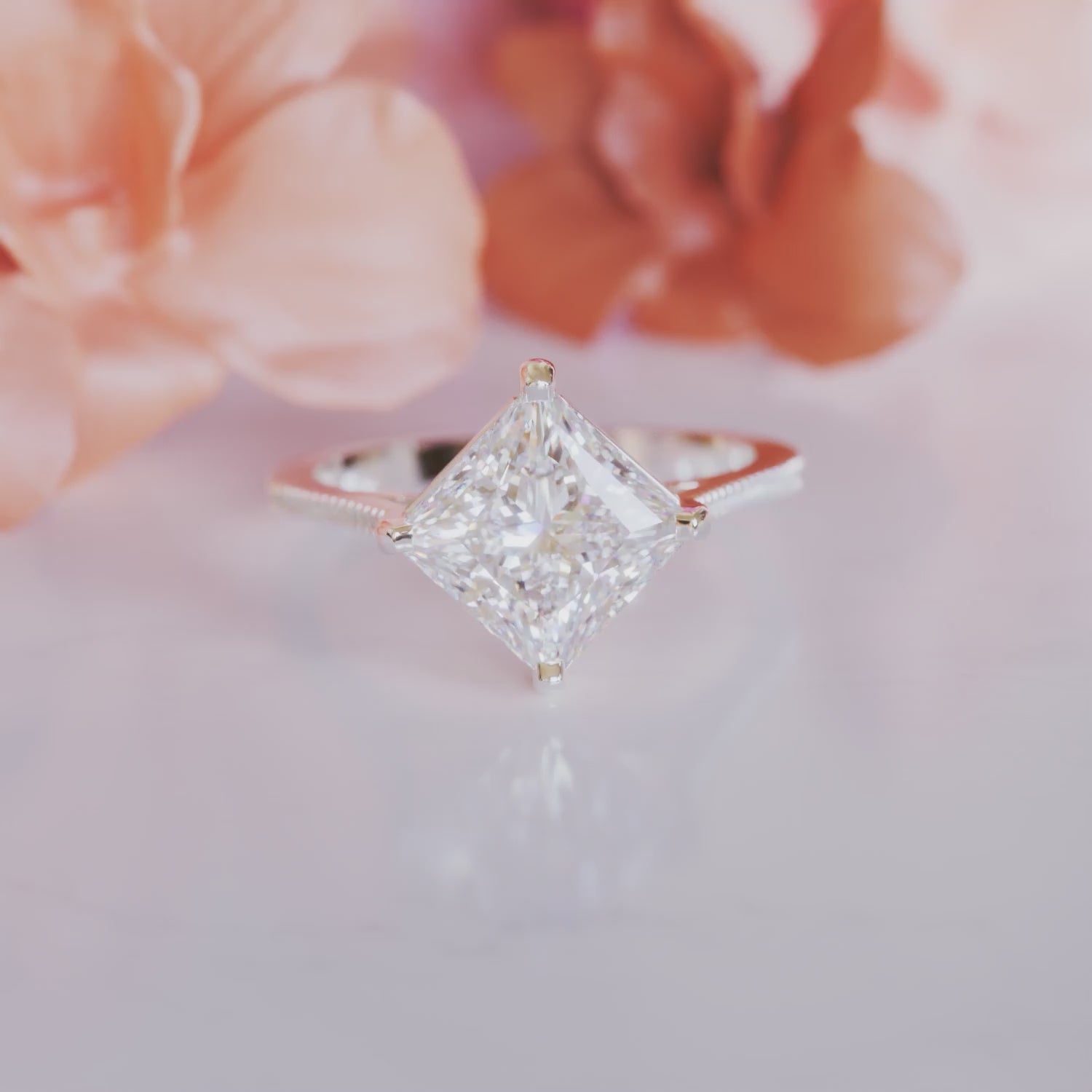 - CT Size: The Gleaming Features a 3CT Flawless Radiant Cut Moissanite center stone. We accept custom requests if you wish for a different CT size. Check the details above for specifics on this ring.