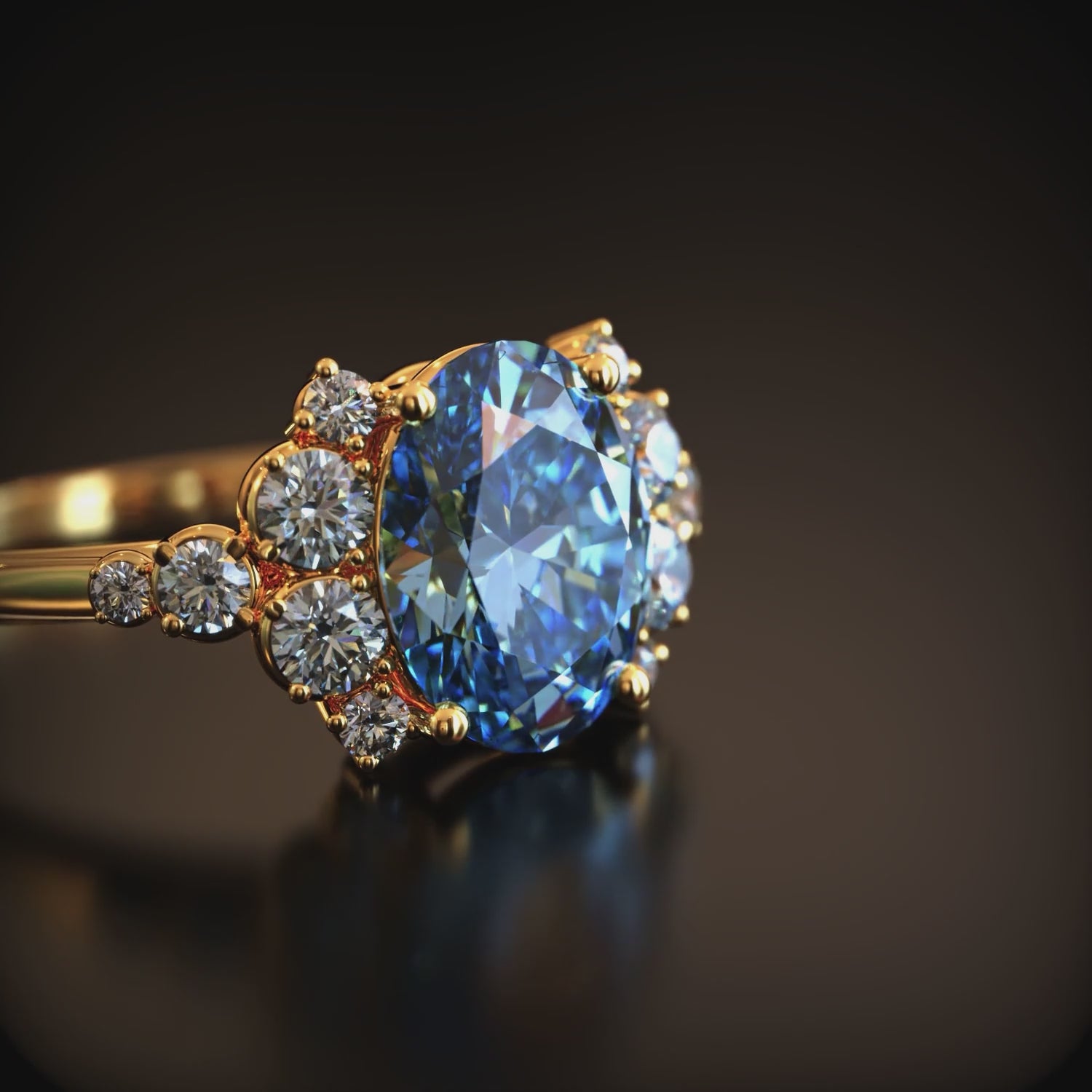 The Lillian 2CT Oval Cut Blue Moissanite Ring