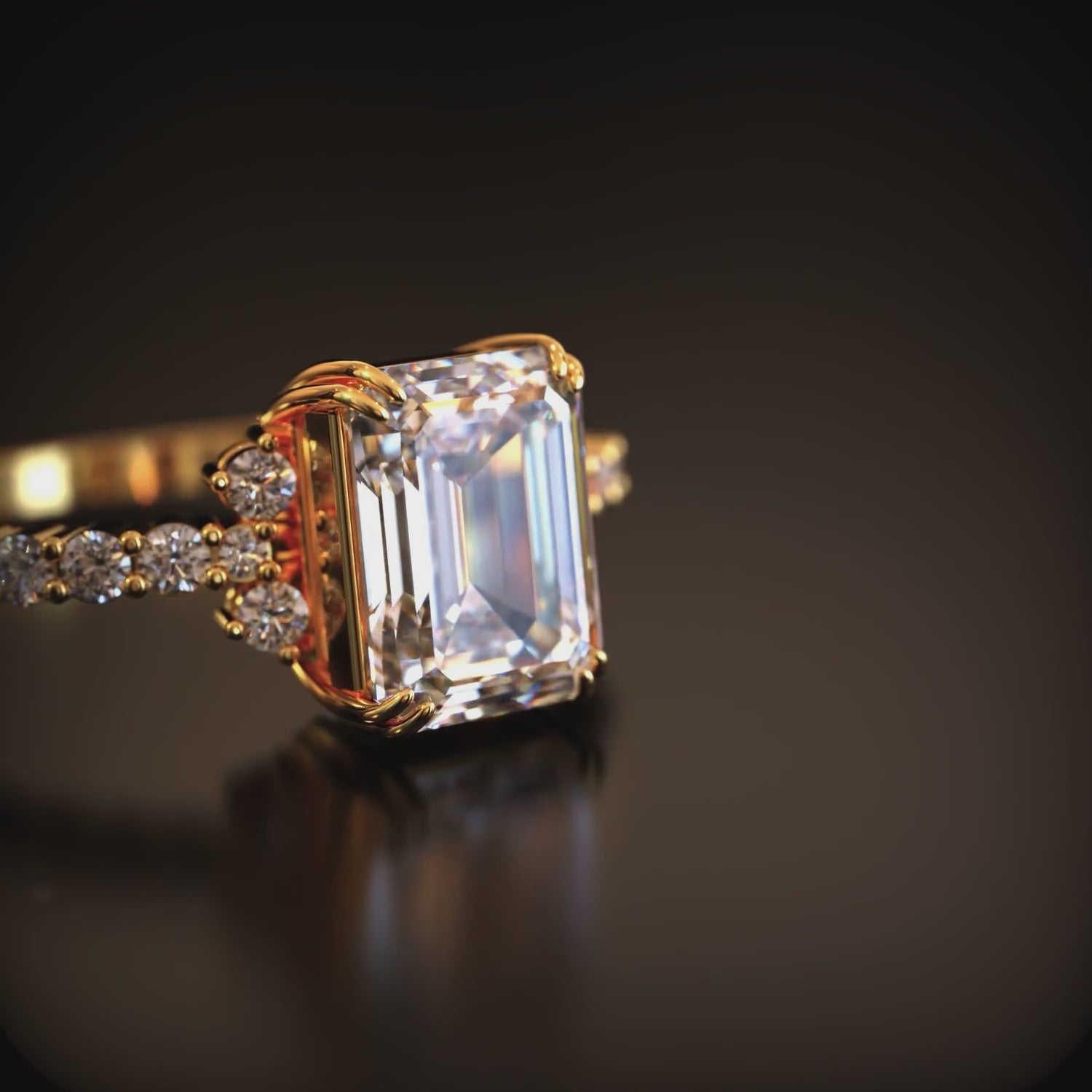 The Natalia Light is a ring that doesn't just adorn your hand; it illuminates it. The emerald-cut moissanite at its center has a truly captivating clarity, like a window to a brighter world.
