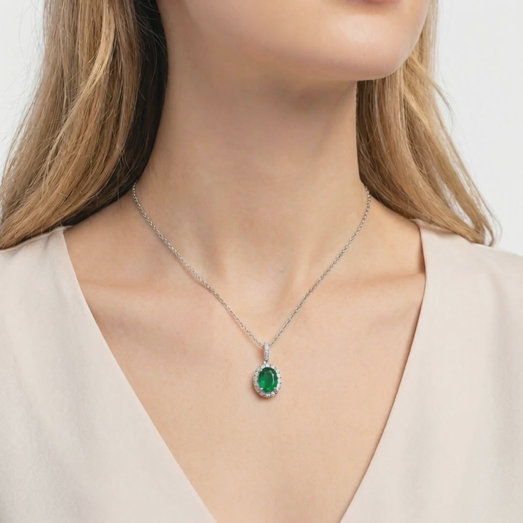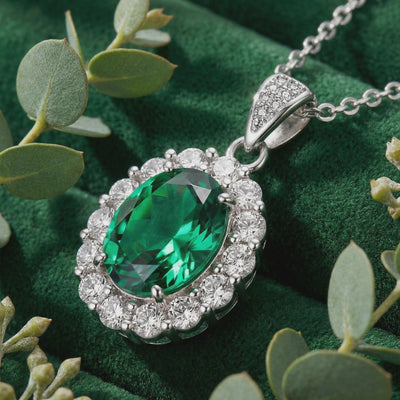 Nature rarely delivers the perfect shade of green without structural flaws. This May birthstone necklace features a museum-grade Simulated Emerald, color-calibrated to achieve the deep, vivid saturation of the world’s finest mined stones. Precision-cut in an elegant oval shape, it is designed for maximum light return and visual physics that rival high-end heirlooms.