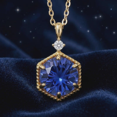 Natural sapphires often contain inclusions that dull their brilliance. This September birthstone necklace features a simulated sapphire, engineered to match the velvety "Royal Blue" saturation found only in museum-grade specimens. Each stone is precision-cut into a sharp hexagon to maximize light return and visual depth.