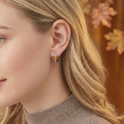 Mined topaz is often pale or inconsistent. These huggie earrings feature Simulated Topaz, color-calibrated to achieve a deep, warm golden/orange topaz with honeyed warmth. Each stone is square-cut to maximize light return and brilliance, flanked by precision-set accents for a high-impact profile.