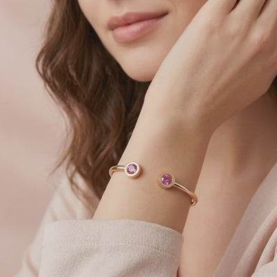 For the October born, we rejected the inconsistency of mined stones. We utilized A5 Grade material to capture a flawless pink saturation with perfect Rose Pink saturation.