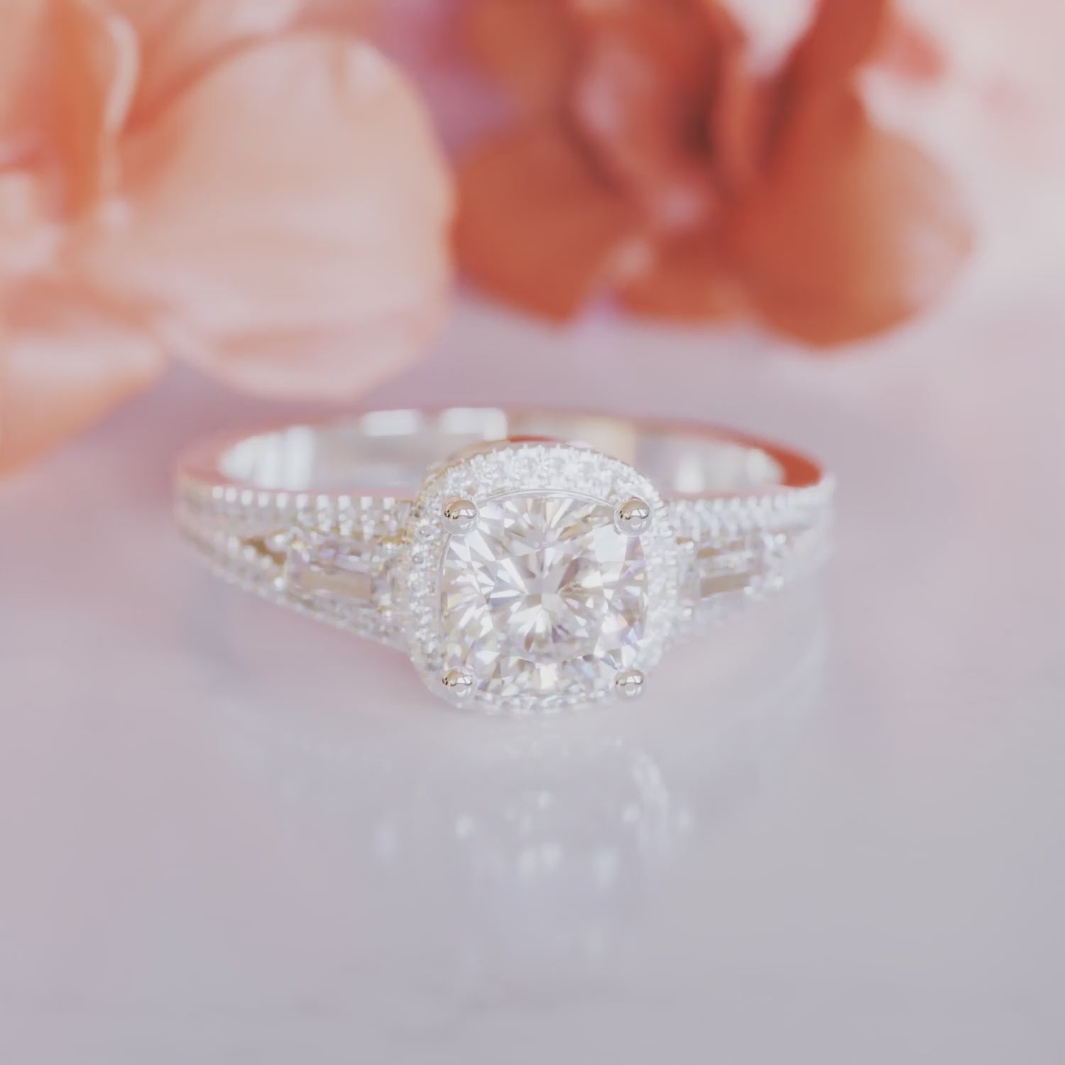 Anillo de moissanita con halo de talla cojín de 4 quilates Precio de oferta$710.95 Precio normal$1,420.95