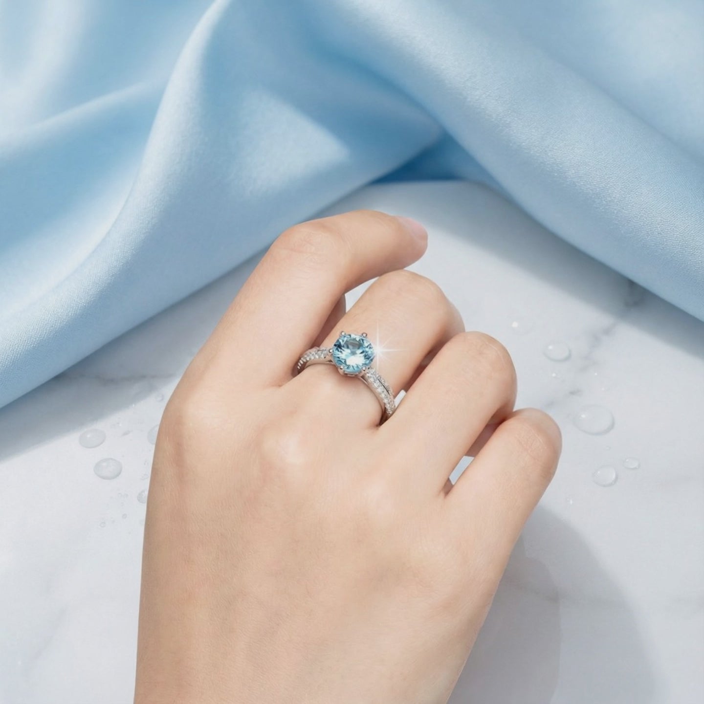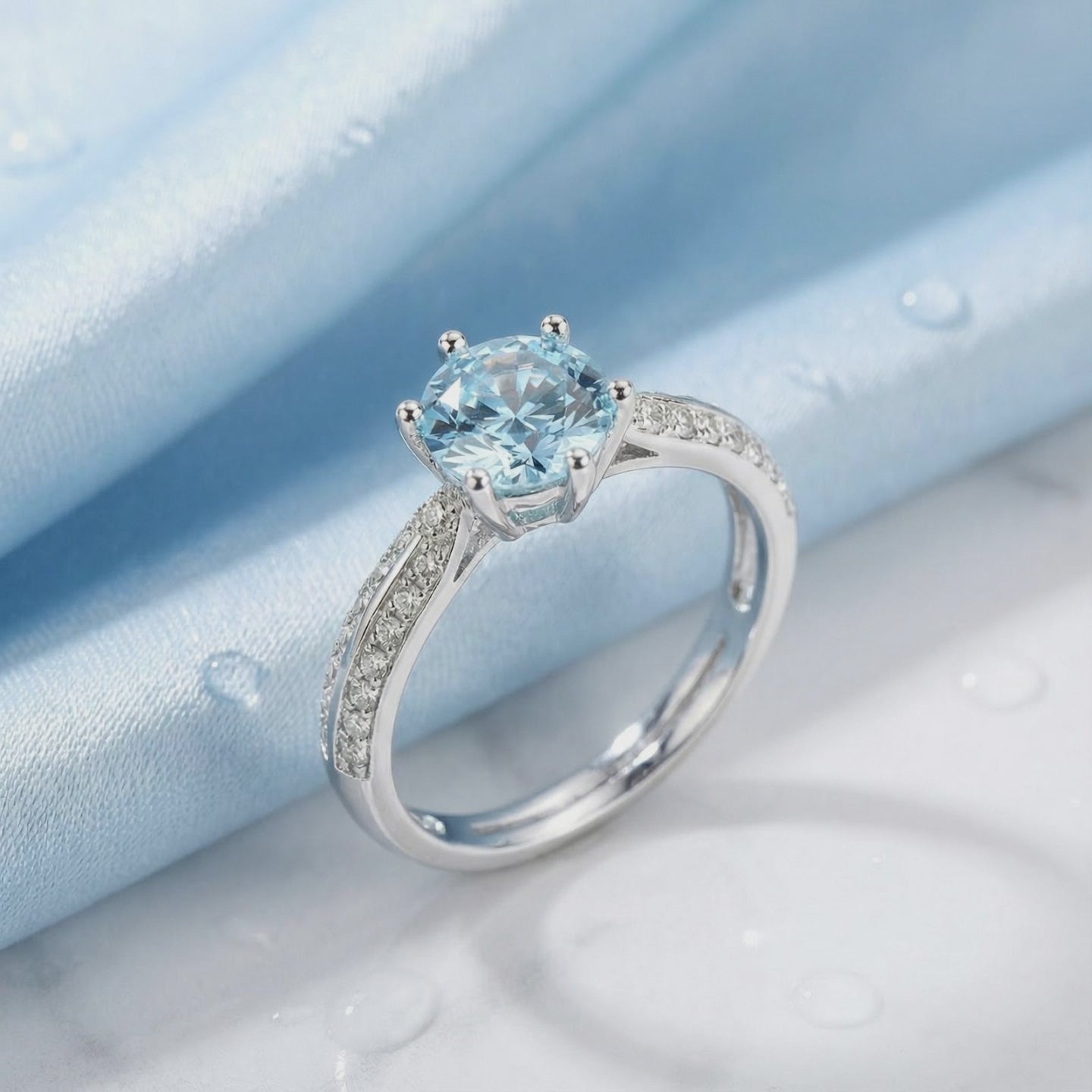- Stone Type: Simulated Aquamarine (A5 Grade Calibrated Zirconia)