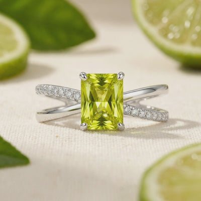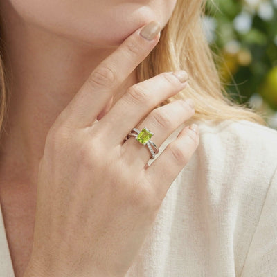 Mined peridots are often characterized by internal cloudy inclusions that dull their natural fire. We engineered this ring using Simulated Peridot, calibrated to achieve the ideal vibrant yellow-green hue with lively brilliance and clarity. This high-performance gemstone is precision-cut to maximize light return, offering the visual profile of a museum-grade stone without the inconsistent quality of mined minerals.