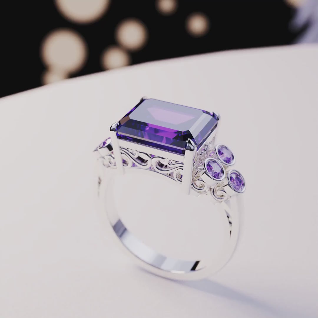 Sueño violeta: anillo esculpido con talla esmeralda - Plata de ley S925