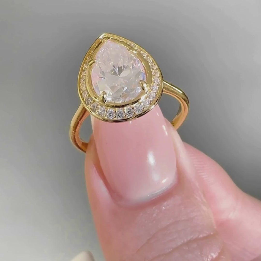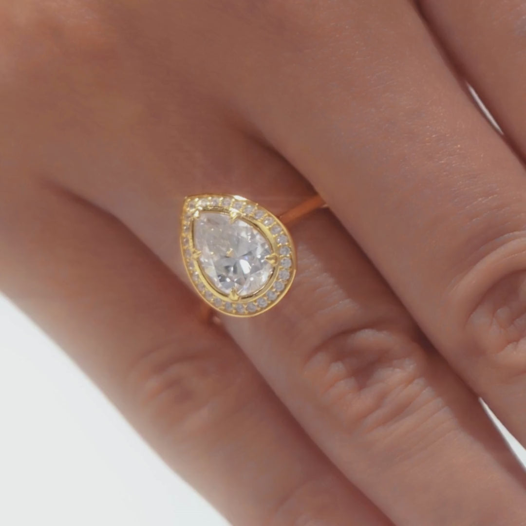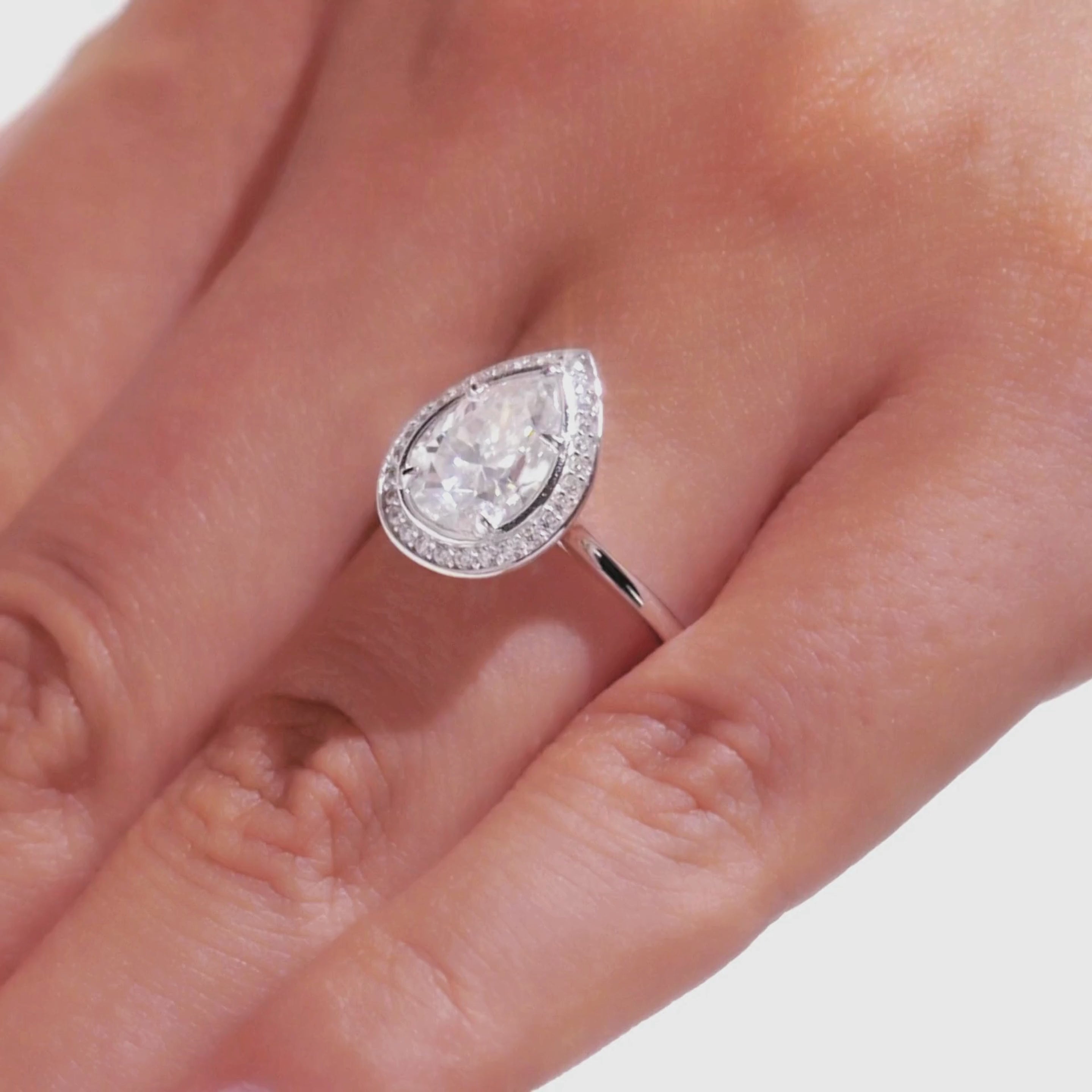 Anillo de moissanita con corte de pera y halo de Charlotte
