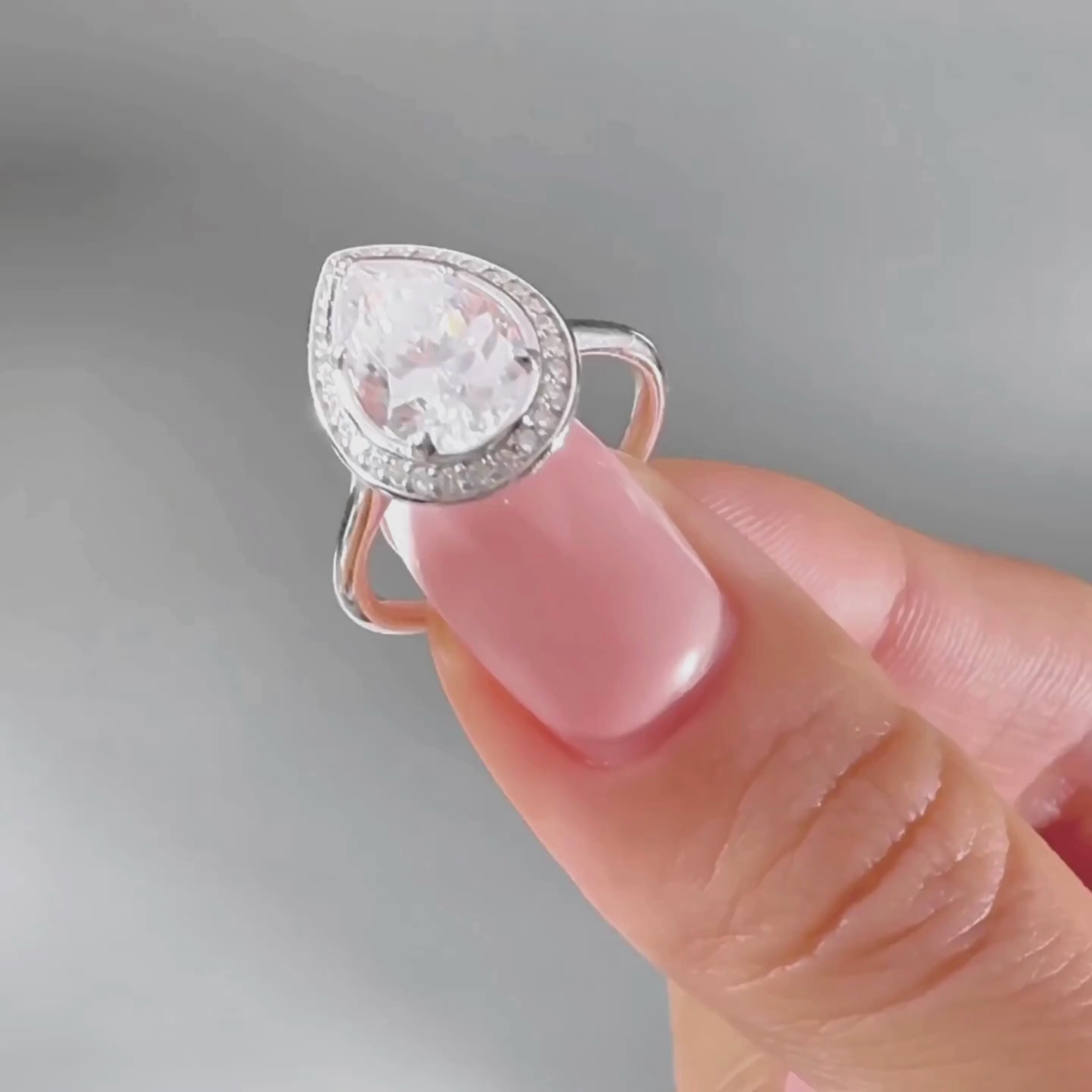El Charlotte luce una brillante piedra de moissanita tallada en forma de pera rodeada de un hermoso halo de moissanita, delicadamente colocada en un engaste seguro en una banda de plata esterlina S925 de primera calidad. Su combinación perfecta de lujo y simplicidad lo hace ideal tanto para usar a diario como para momentos especiales.