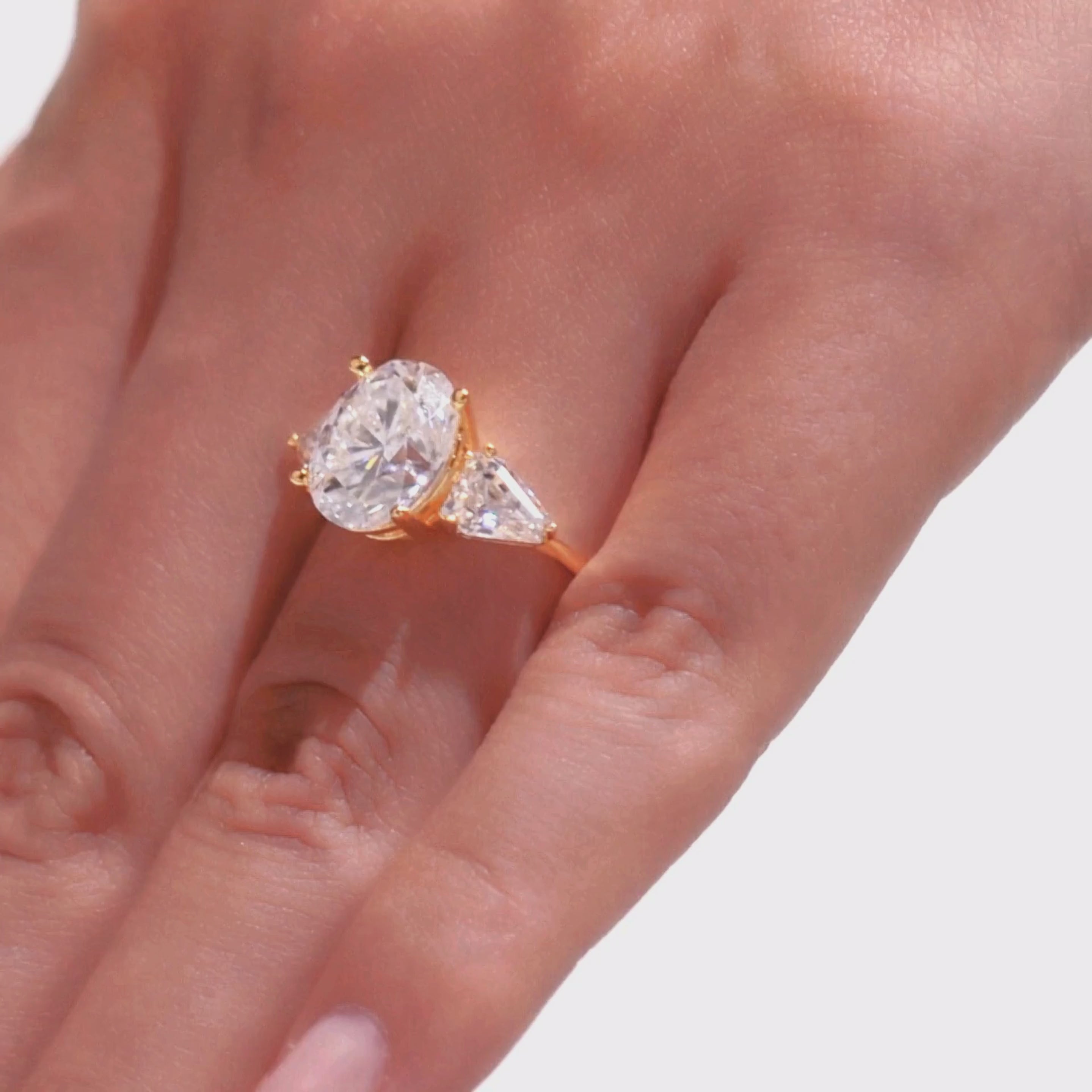 Anillo de moissanita ovalada de tres piedras Evelyn
