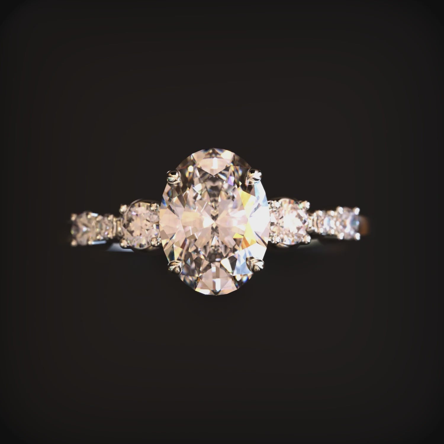 - CT Size: The Alina -Silver Features a 2.5 CT Oval Cut Moissanite. The side stones are round shape.