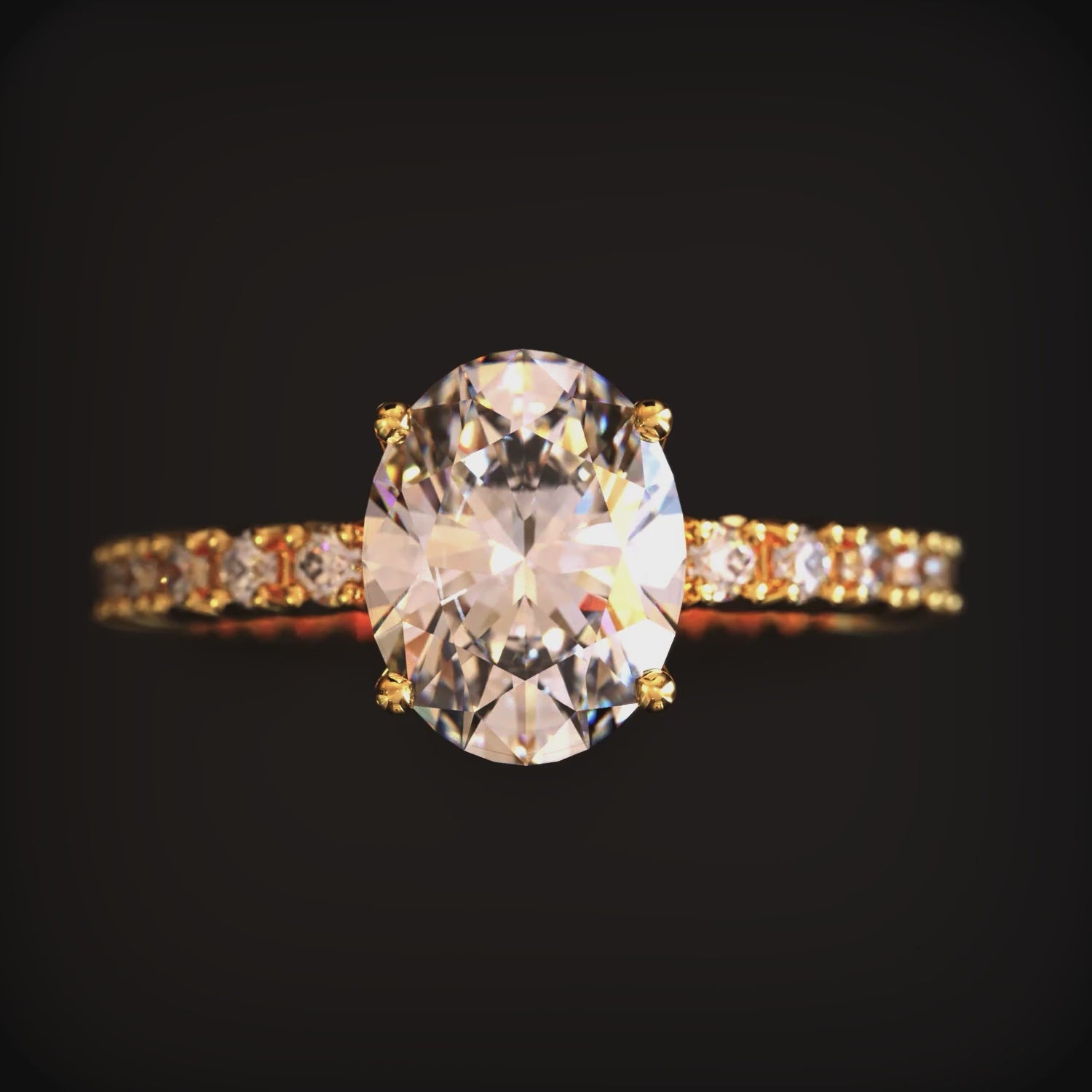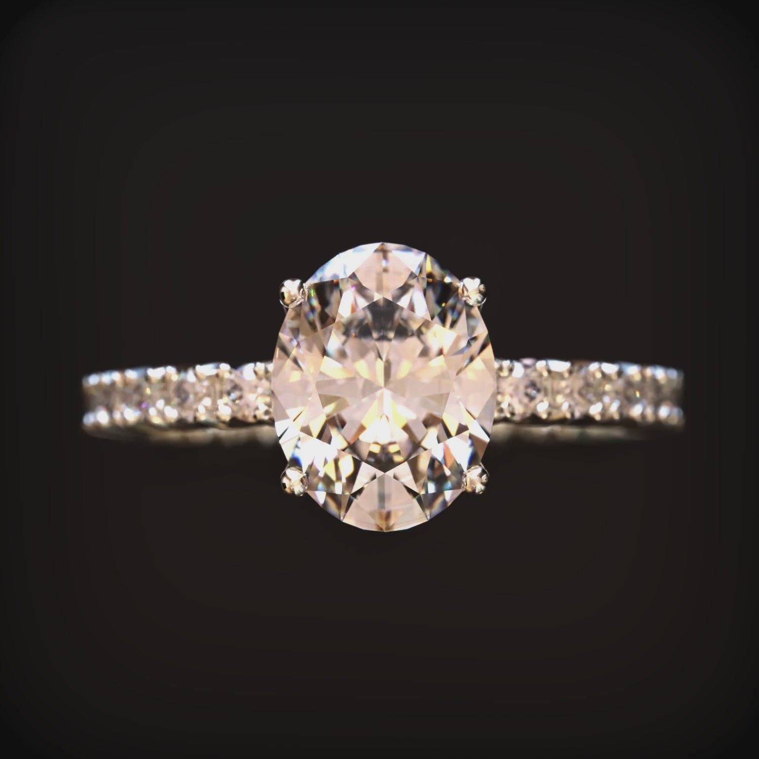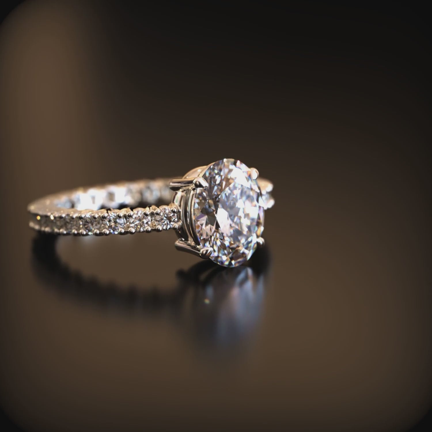 - Stone: Oval cut moissanite gemstone