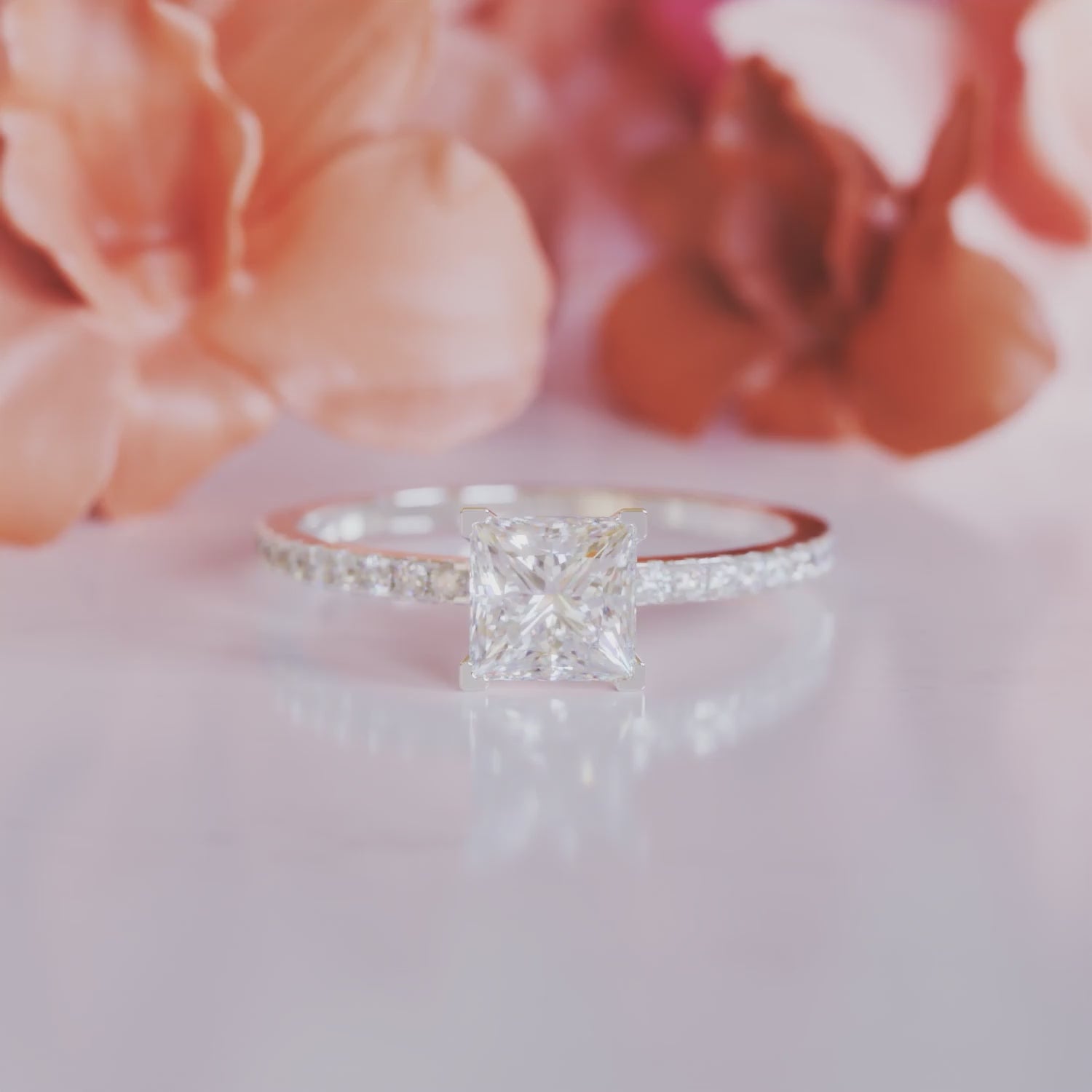 - Stone: Ideal Princess cut moissanite gemstone