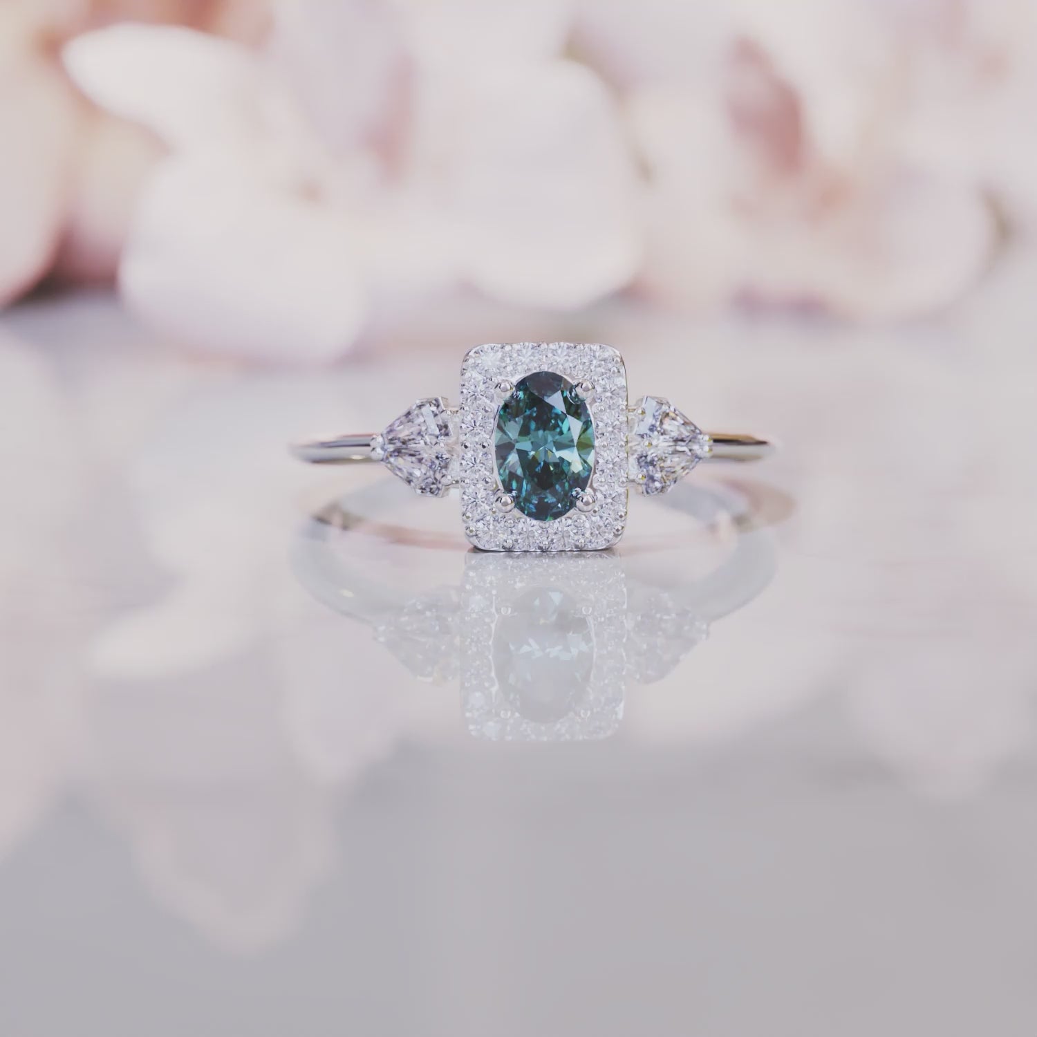 El anillo de alejandrita talla pera Amy de 0,5 quilates: una expresión atemporal de color y luz