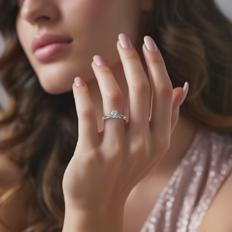 Este anillo de moissanita de 1 quilates está elaborado con plata esterlina S925 de alta calidad y bañado en platino vermeil para un acabado pulido y duradero. El diseño de banda retorcida agrega un toque elegante y moderno a la apariencia atemporal.