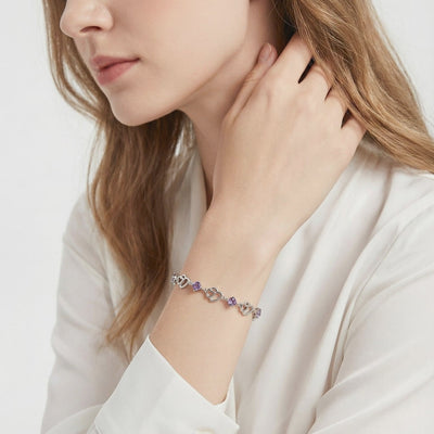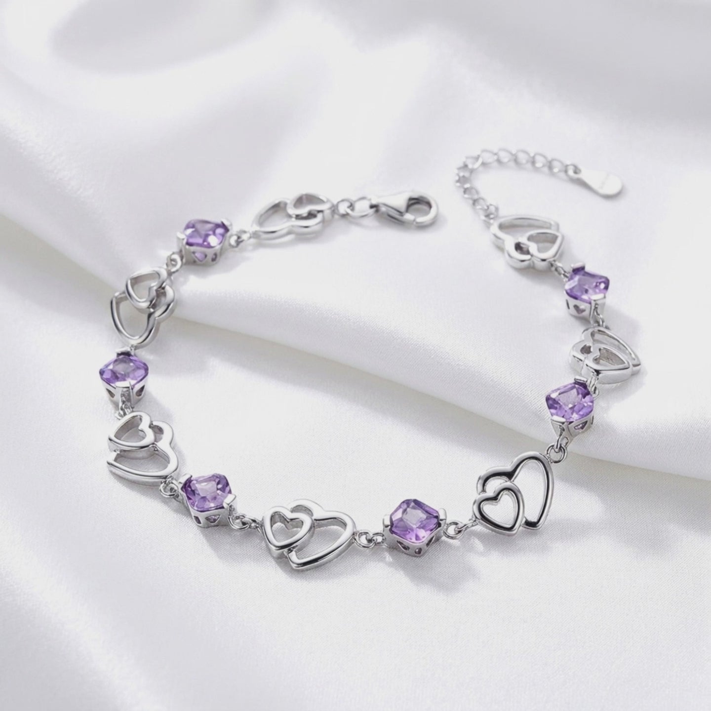 Nature is inconsistent. Mined amethysts often suffer from cloudy inclusions and uneven color distribution. This bracelet features Simulated Amethyst stones, precision-cut and color-calibrated to the absolute ideal of deep, saturated purple. Each stone is faceted to maximize light return and visual physics.