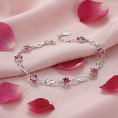 Mined pink tourmaline is notorious for inclusions and muddy undertones. We engineered the solution. This station bracelet features precision-cut Simulated Pink Tourmaline, color-calibrated to a warm raspberry brilliance that remains consistent in every stone. No cloudy centers. No dull facets. Just pure optical performance.