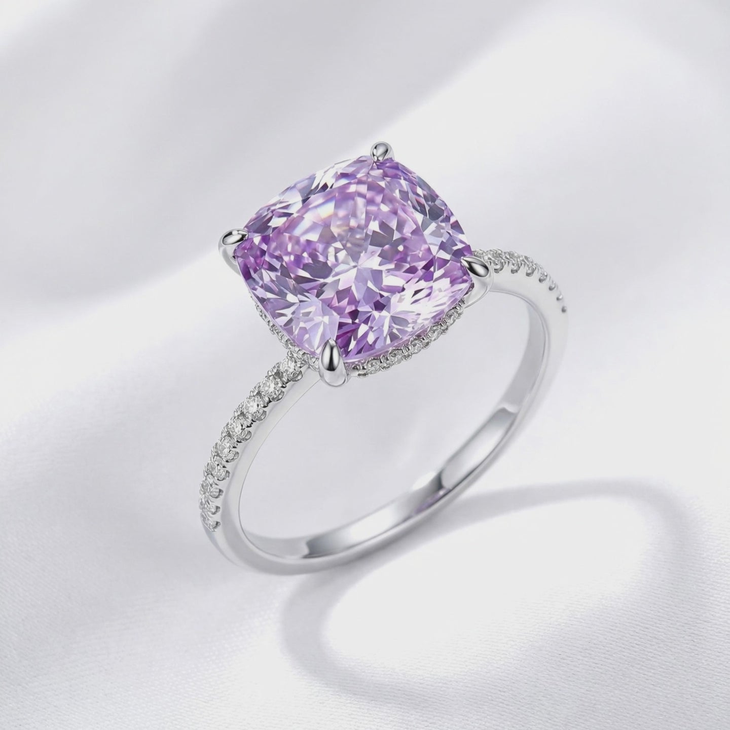 - Stone: A5-Grade Simulated Amethyst (Precision-Cut Cushion).