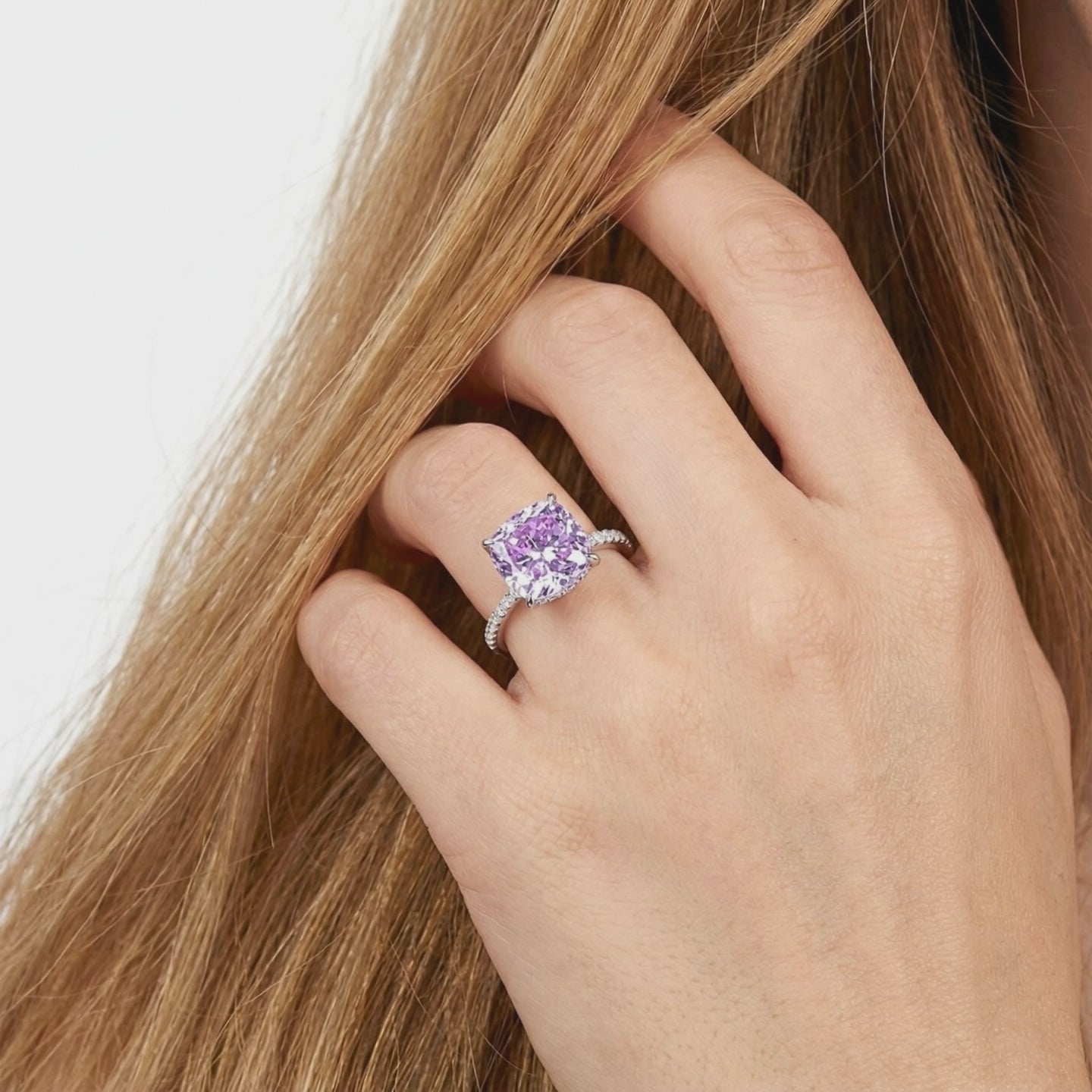 The setting is engineered for durability and daily performance. Built from Solid 925 Sterling Silver and finished with a thick layer of Rhodium, this ring is designed to resist tarnish, hand sanitizer, and the friction of a busy life. The low-profile cushion cut ensures the stone sits securely, while the micro-pavé halo adds a layer of optical intensity that rivals heritage-brand heirlooms without the scarcity tax.