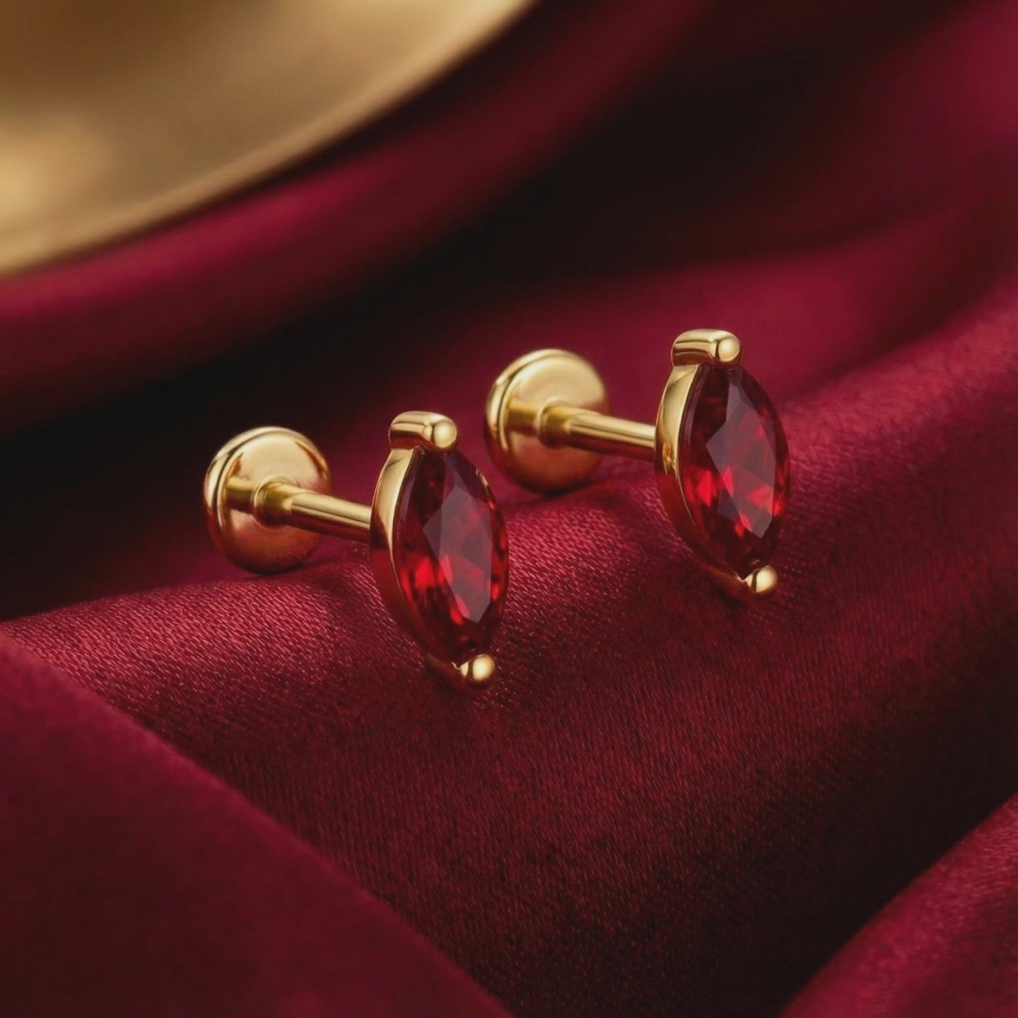 Natural rubies are rarely perfect; they are often clouded by inclusions or carry a dull, brownish hue. These earrings feature Simulated Ruby, engineered to match the elite "Pigeon Blood" red standard. The marquise cut is precision-calibrated to maximize internal fire, delivering the visual physics of a museum-grade stone without the mining markup.