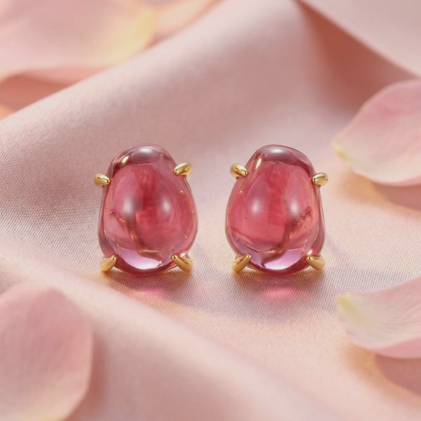Nature rarely delivers the perfect shade of pink, but we do. These teardrop stud earrings feature Simulated Pink Tourmaline, color-calibrated to achieve a warm raspberry brilliance and exceptional clarity that mined stones rarely possess. Each stone is precision-cut to maximize light return, ensuring a deep, consistent saturation that glows from every angle.